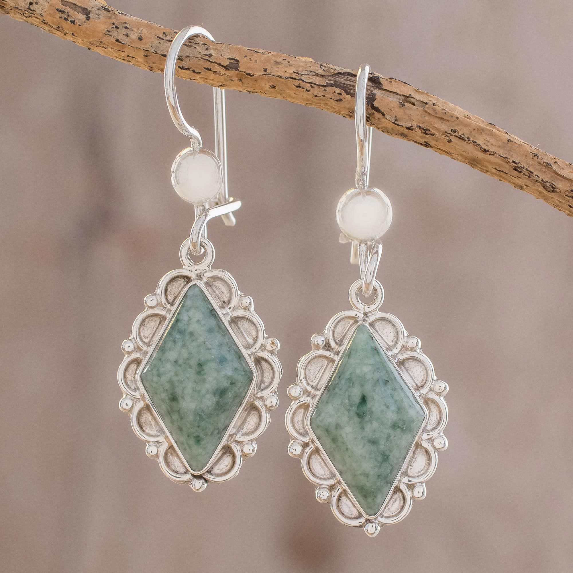 Handcrafted Jade Drop Earrings from Guatemala, 'Seafoam Diamond'