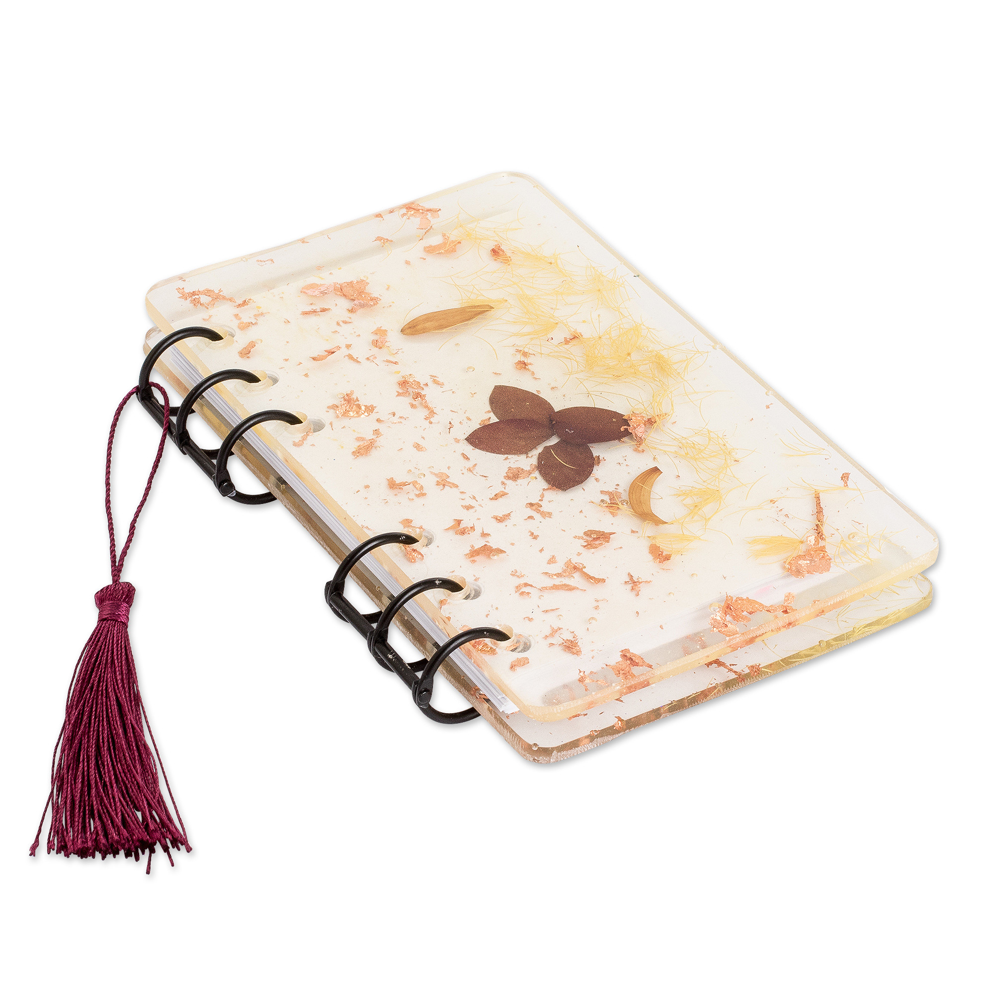 Handcrafted Leafy Resin Journal with Burgundy Tassel, 'Evening Forest'