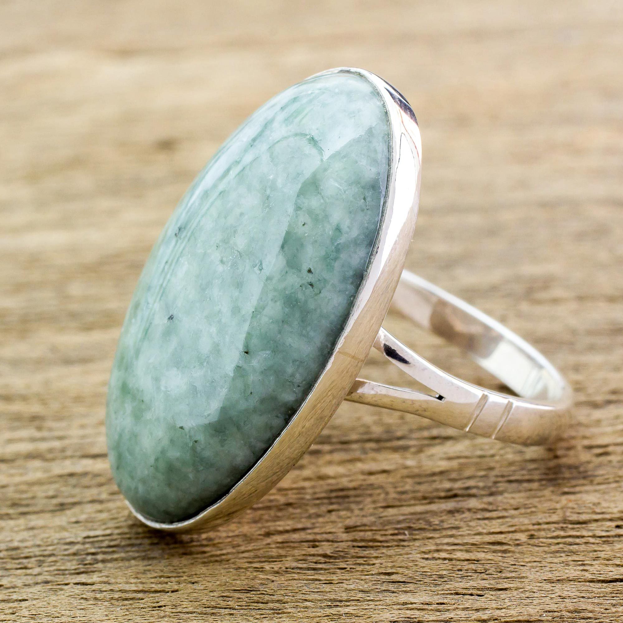 Handcrafted Minimalist Forest Green Jade and Silver Ring, 'Shades of Green'