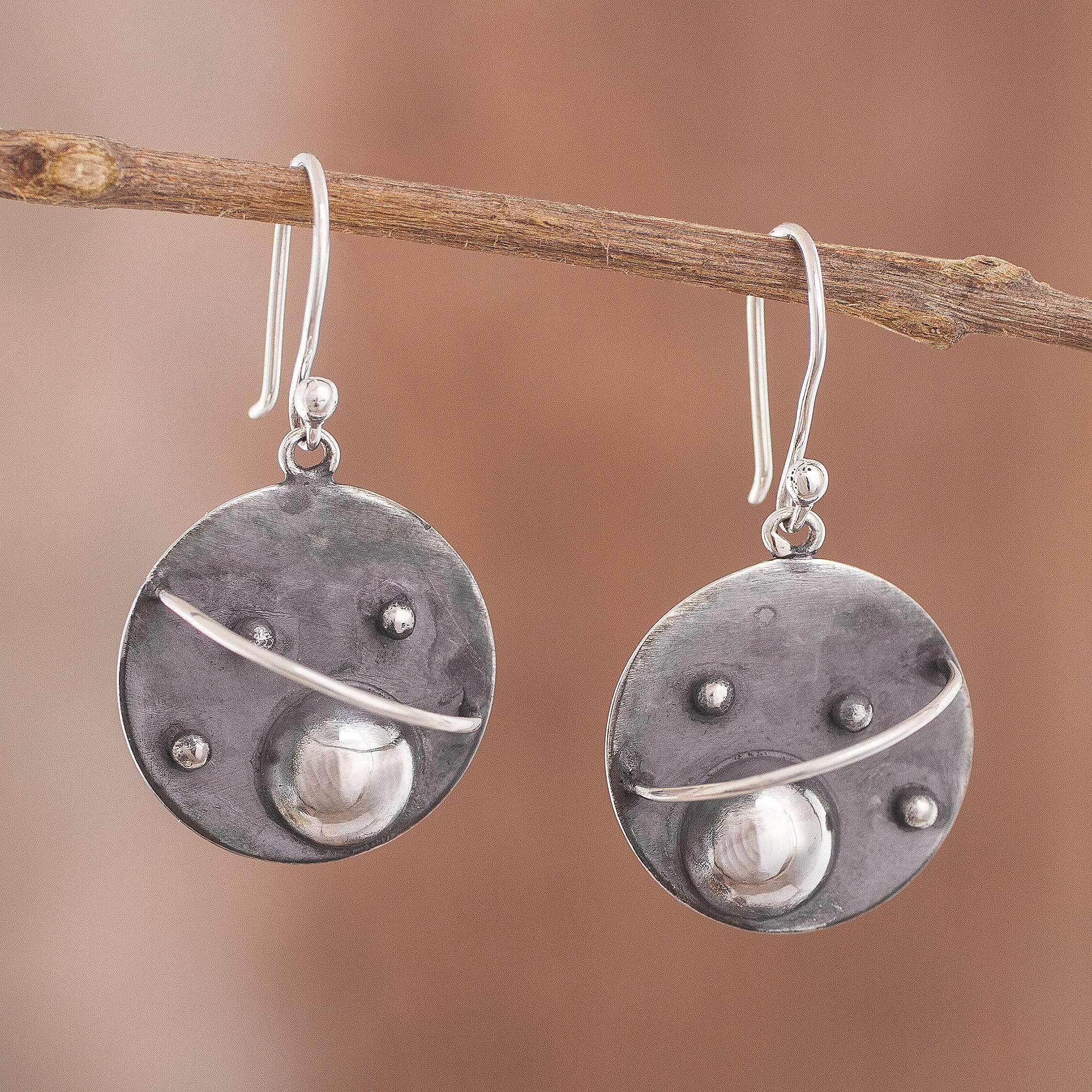 Handcrafted Modern Sterling Silver Dangle Earrings from Peru, 'Modern Universe'