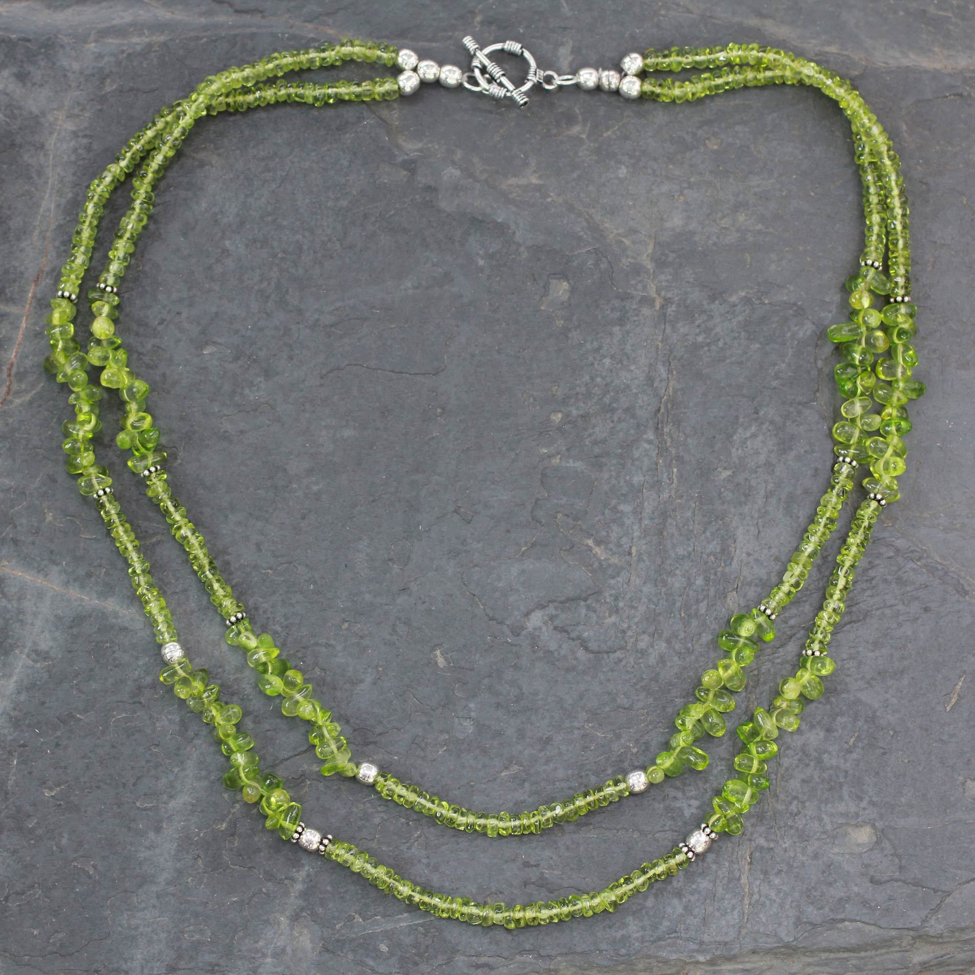 Handcrafted Natural Peridot Double Strand Necklace, 'Nature's Charm'