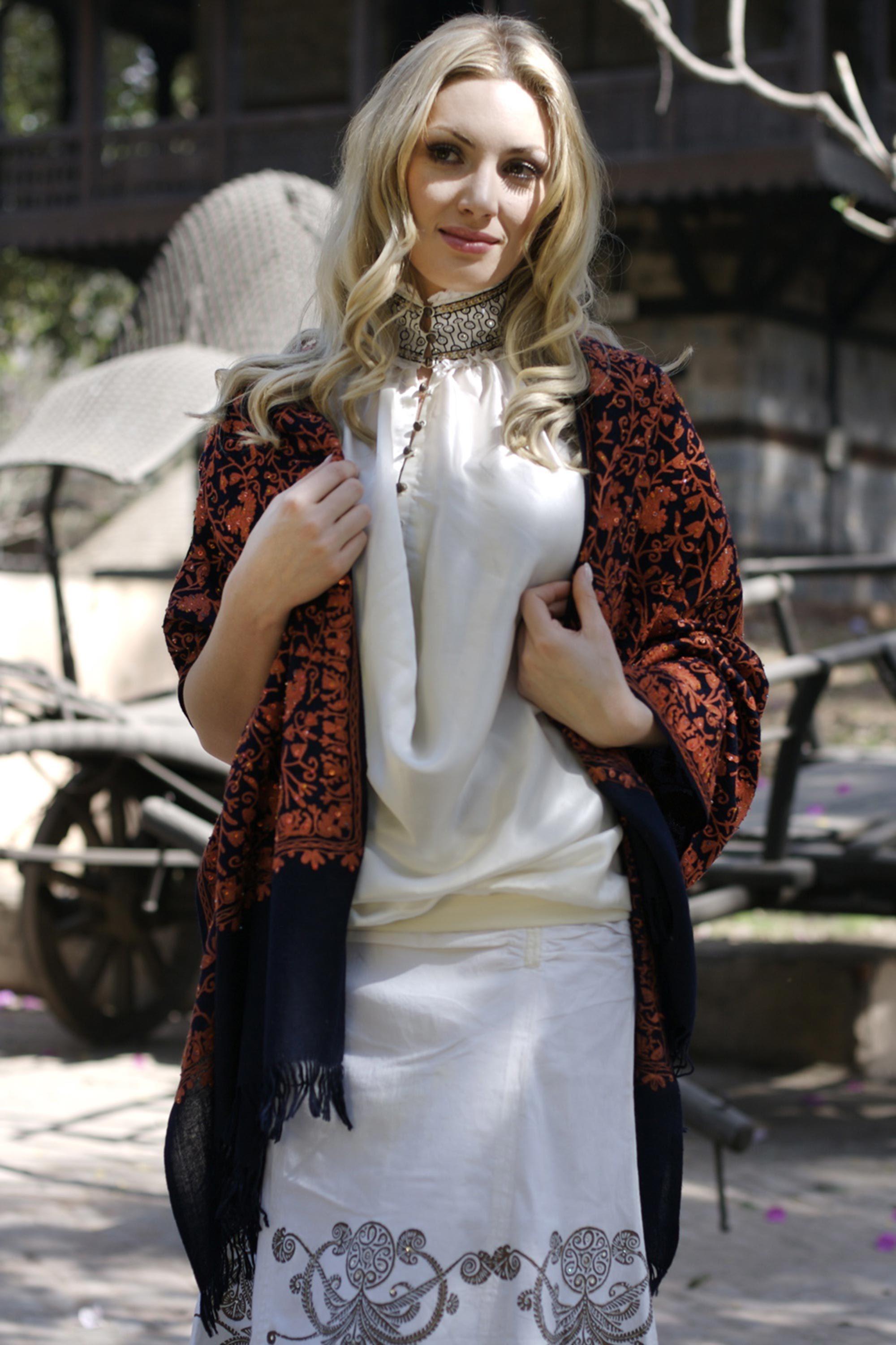 Handcrafted Paisley Wool Embroidered Shawl, 'Sparkling Paisley'