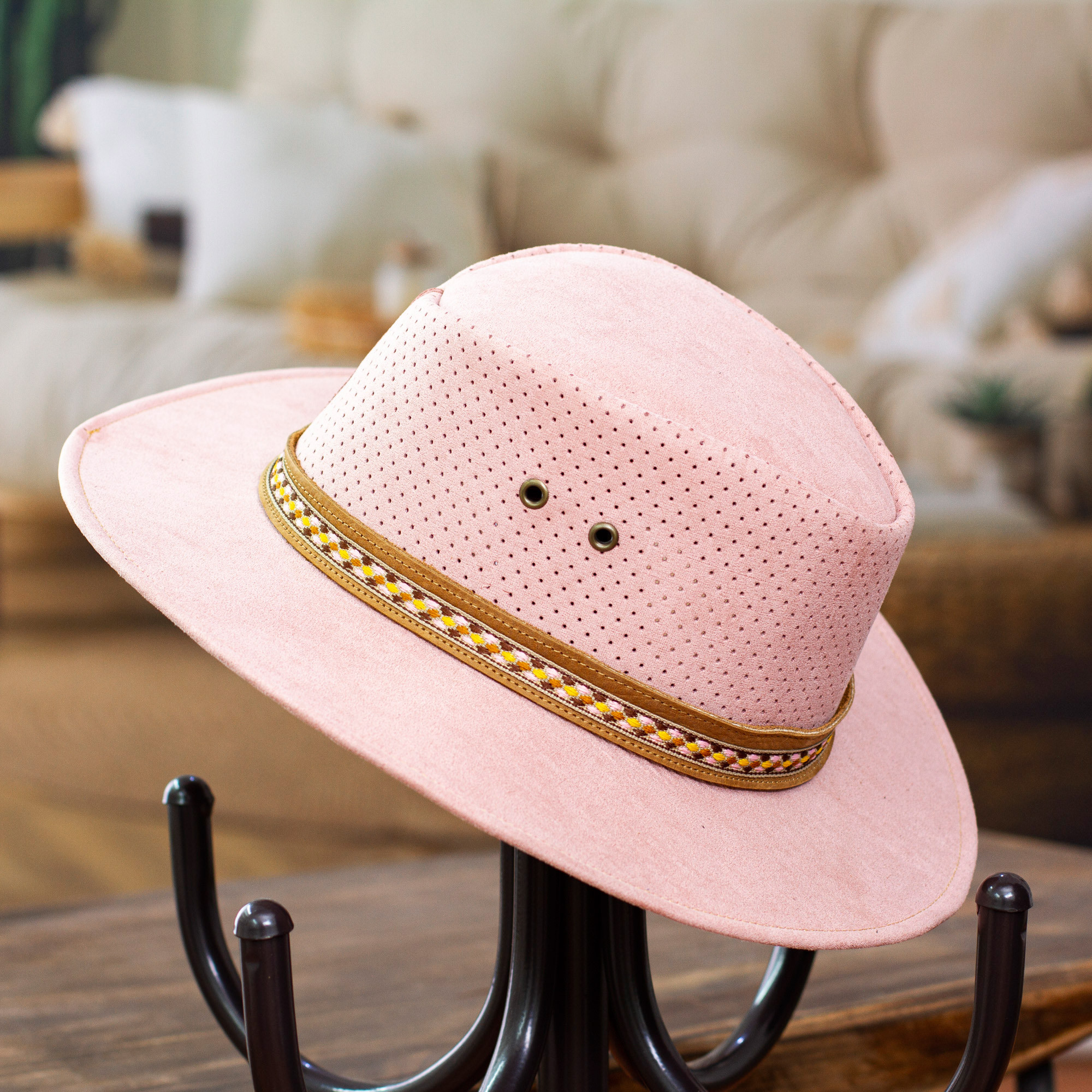 Handcrafted Pink Leather Hat with Polyester Hatband, 'Classy Accent in Pink'