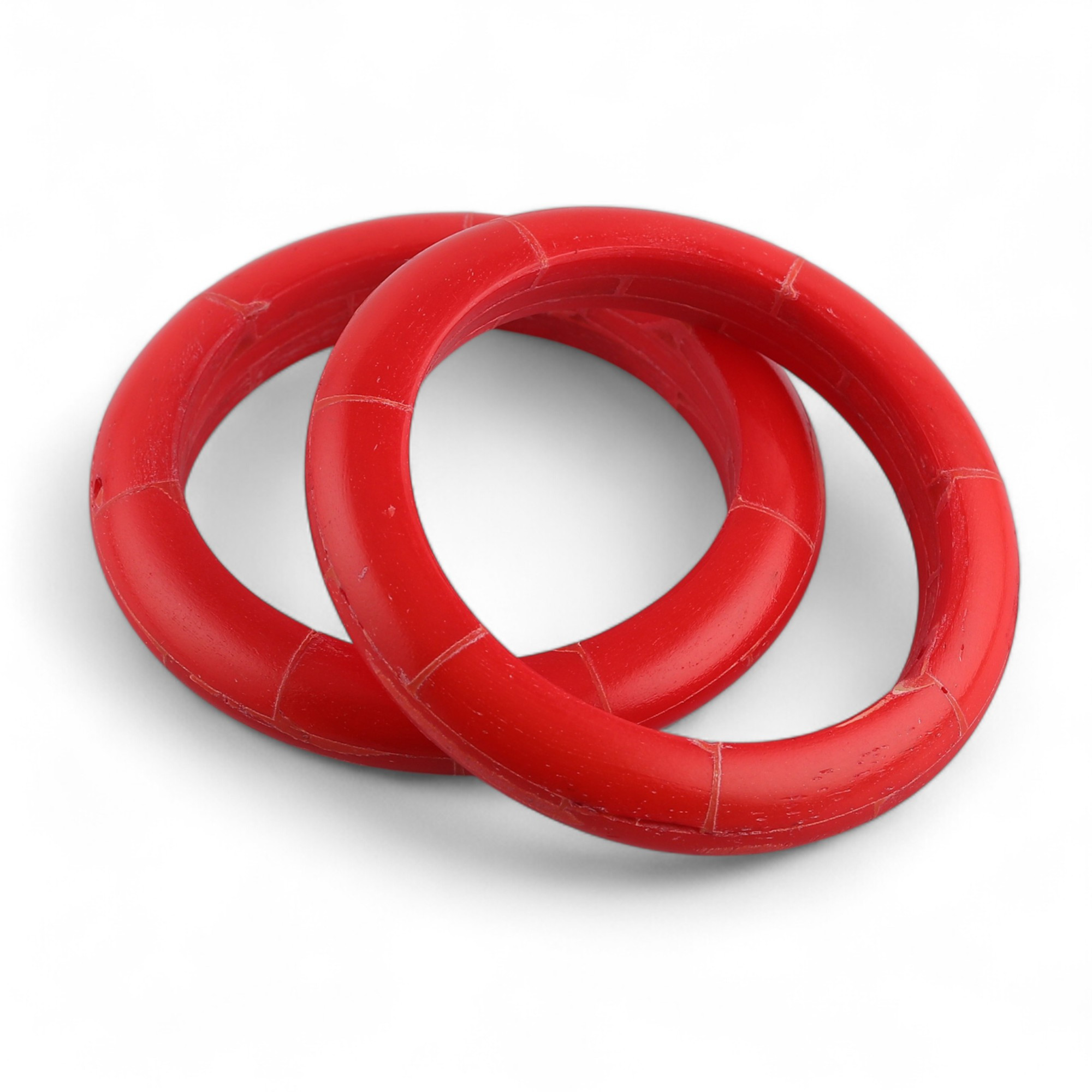 Handcrafted Polished Bangle Bracelet Pair in Scarlet Red, 'Scarlet Aura'