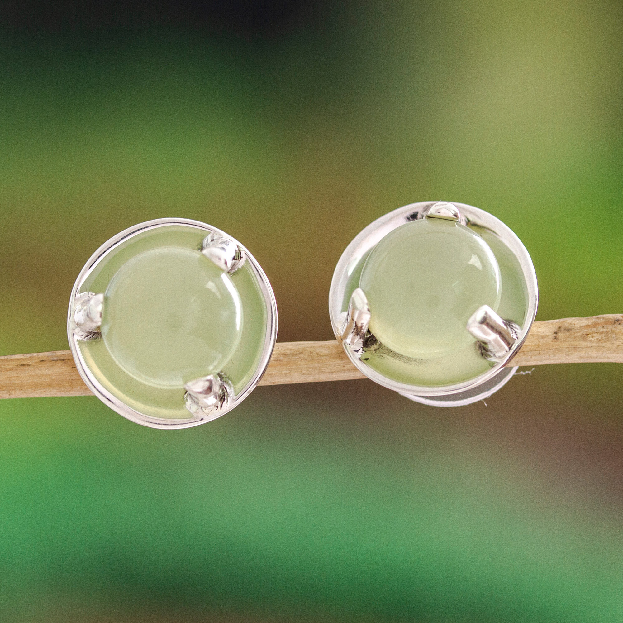 Handcrafted Prehnite and Taxco Silver Earrings, 'Light of Taxco'