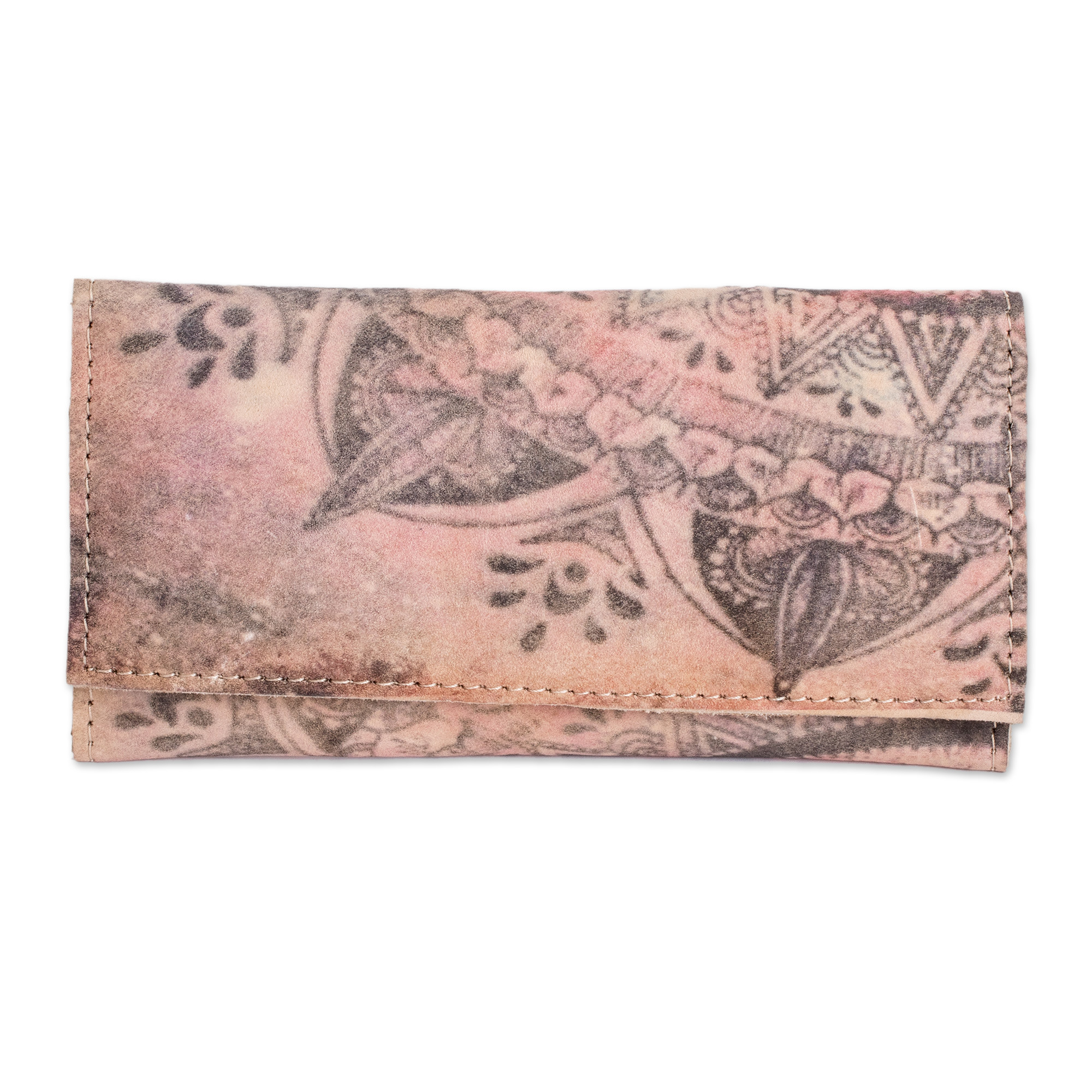 A mysterious design with pink accents embellishes this enchanting wallet crafted in Costa Rica by Wendy Oviedo. Using leather in a beige tone and a mandala-inspired pattern at the front of the accessory, the artisan crafts a trendy item equipped with multiple compartments, a zippered pocket and a secure magnetic snap that will keep everything in order.