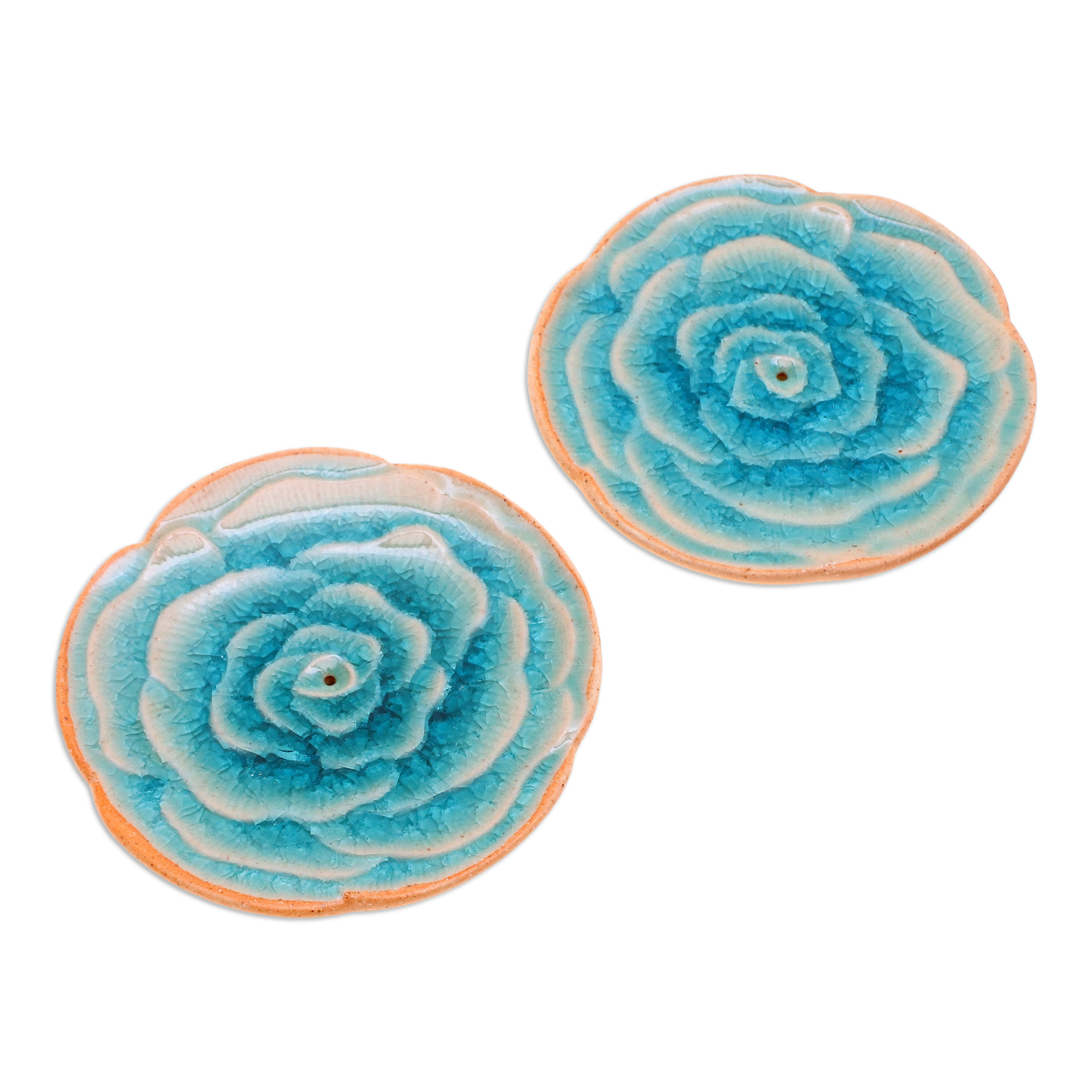 Handcrafted Rose-Shaped Blue Ceramic Incense Holders (Pair), 'Dear Blue'