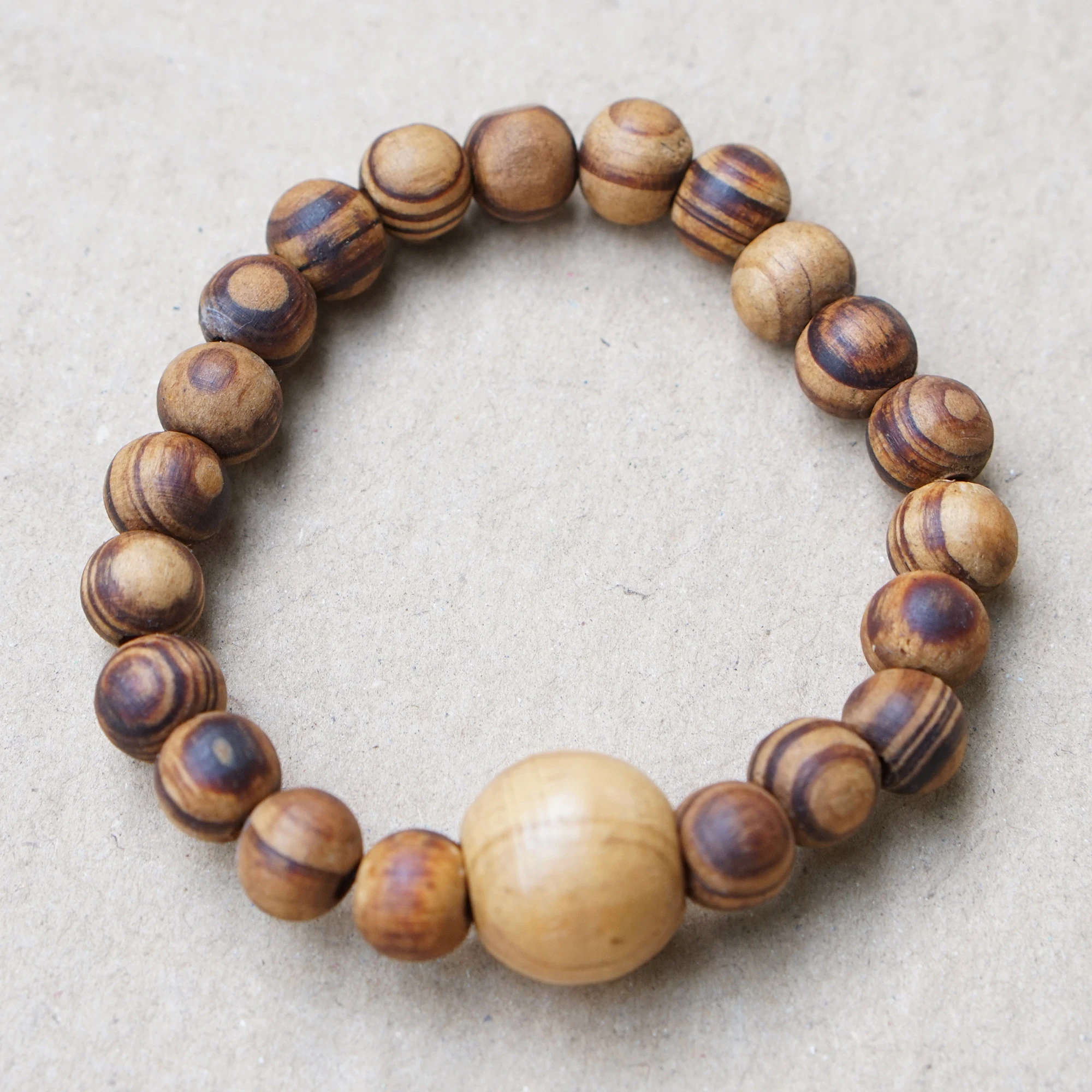• Sese wood beads, elastic cord