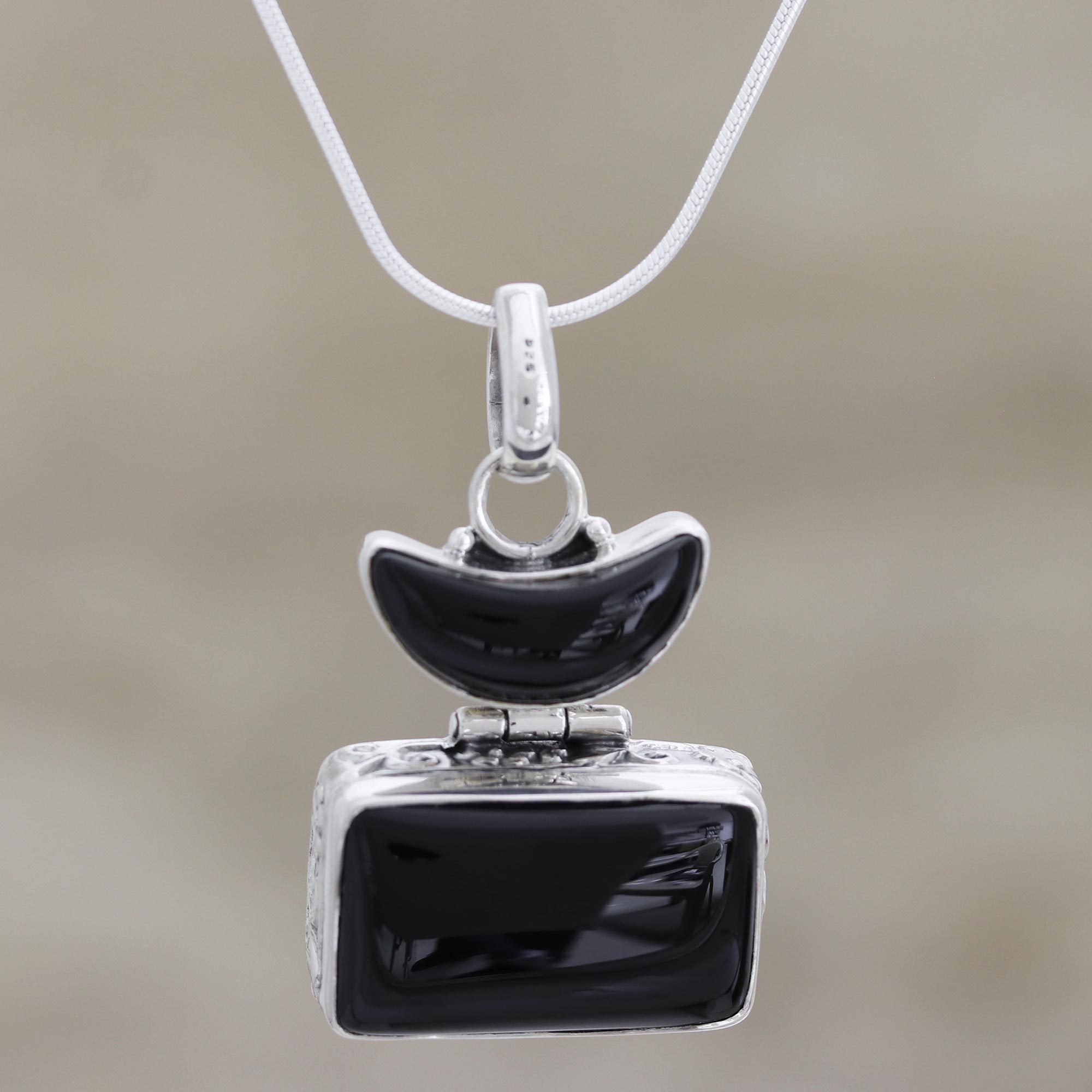 Handcrafted Silver and Onyx Pendant Necklace, 'Black Midnight'