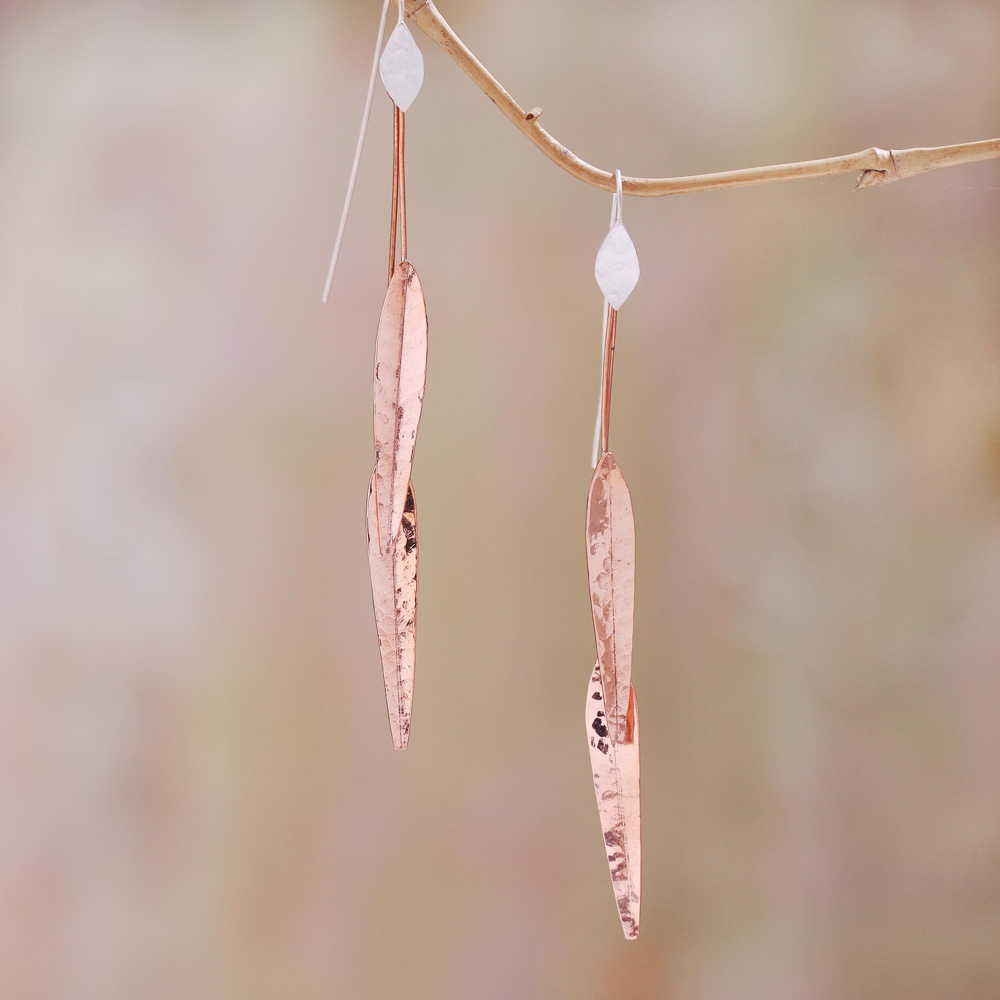 Handcrafted Sterling Silver and Copper Dangle Earrings, 'Summer Points'