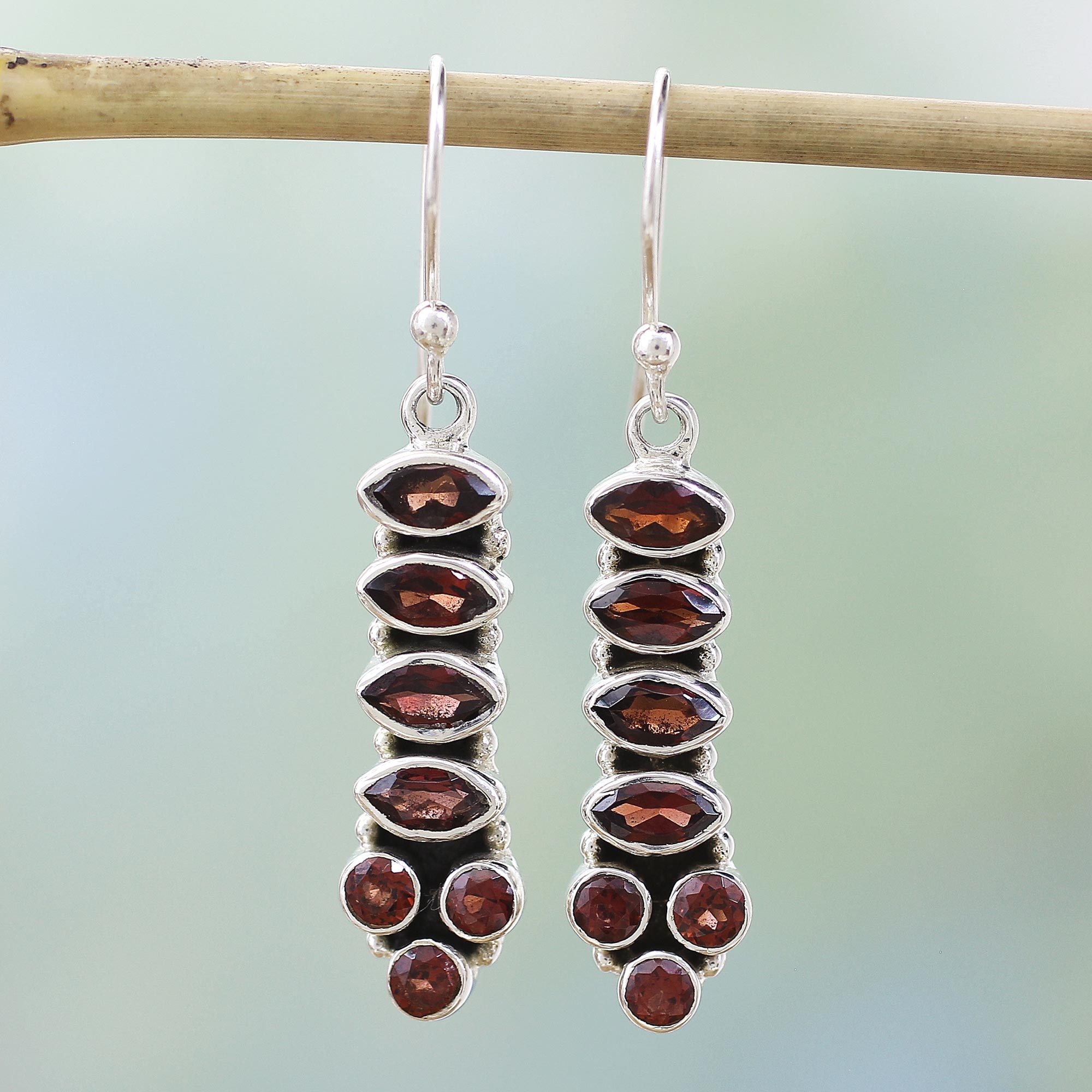 Handcrafted Sterling Silver and Garnet Earrings, 'Incandescent Passion'