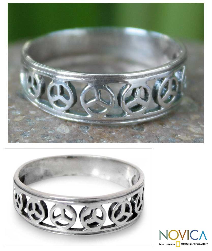 Handcrafted Sterling Silver Band Ring, 'Plea for Peace'