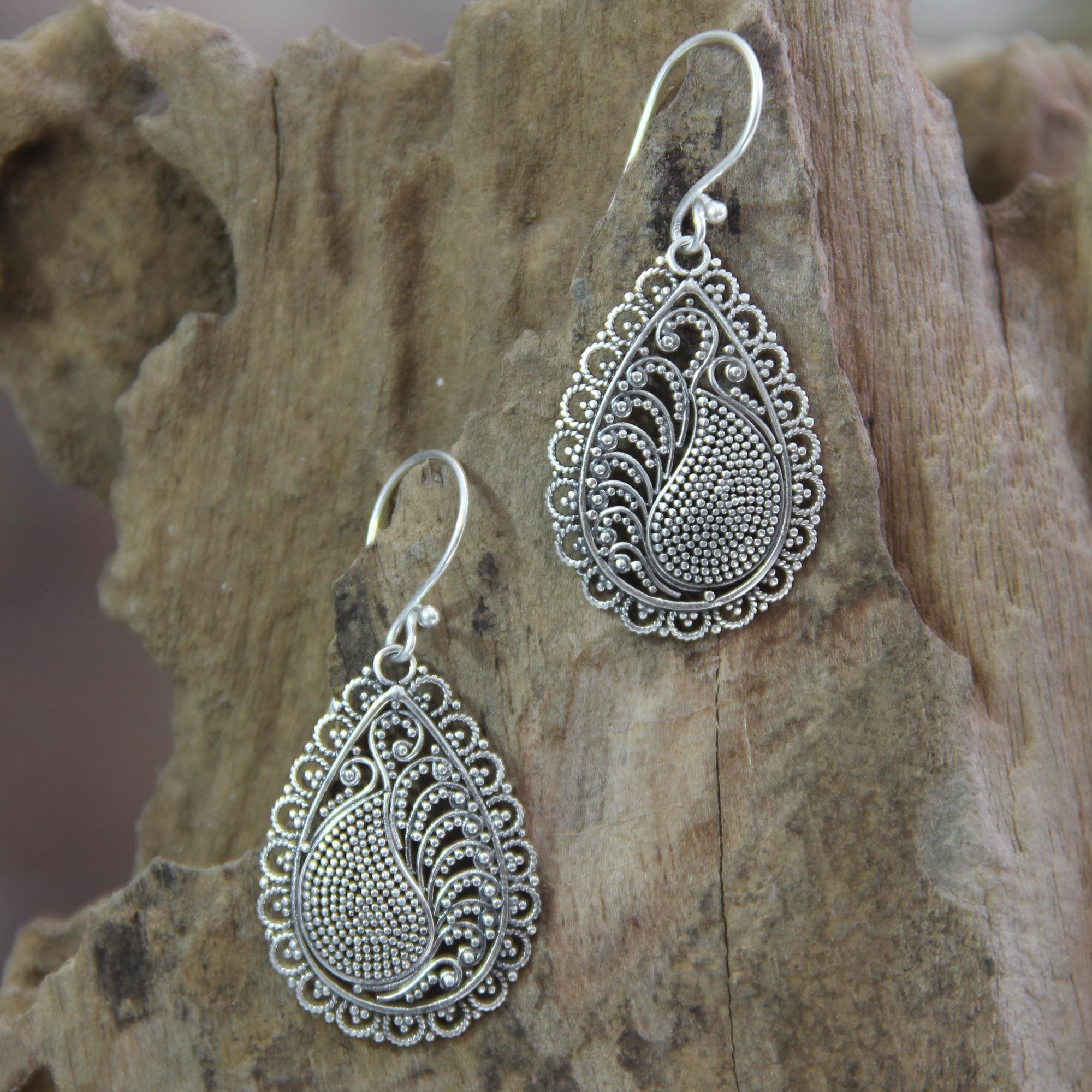 Delicate curls like peacock feathers shine in these earrings designed by Komang Wijayana. Dazzling with Balinese artistry, the sterling silver earrings are crafted by hand.