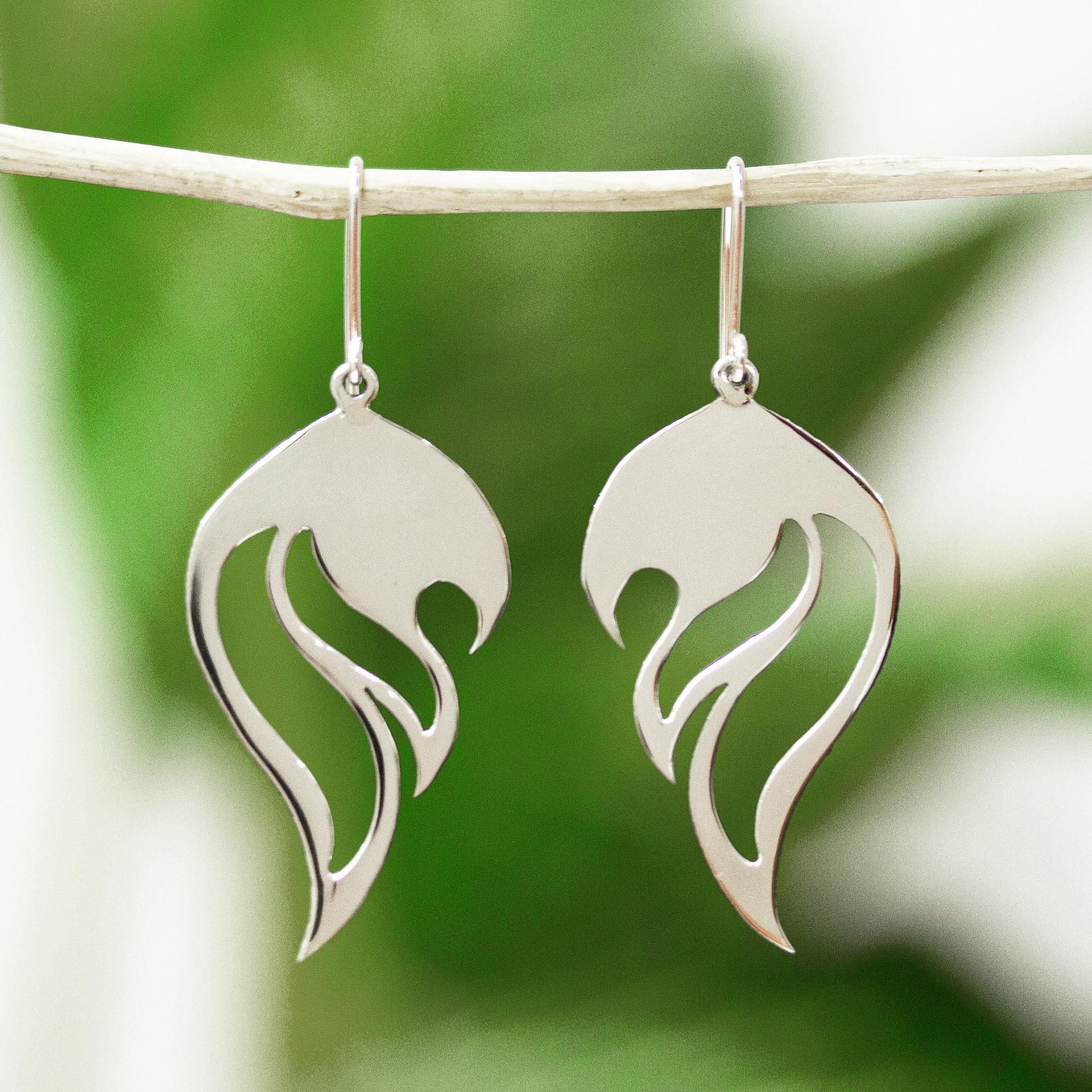 Handcrafted Sterling Silver Earrings, 'In Flames'