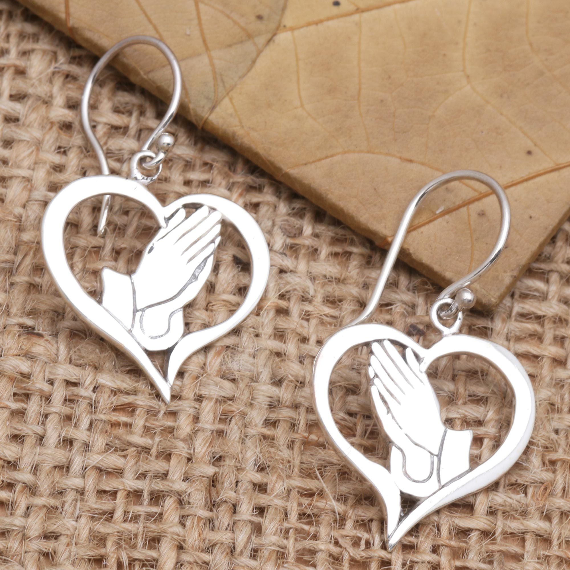 Bring peace and love into your life with Nyoman Ariawan's lovely dangle earrings. The Balinese artisan centers the earrings with a pair of praying hands, which he frames with a polished sterling silver heart and finishes with matching silver hooks.