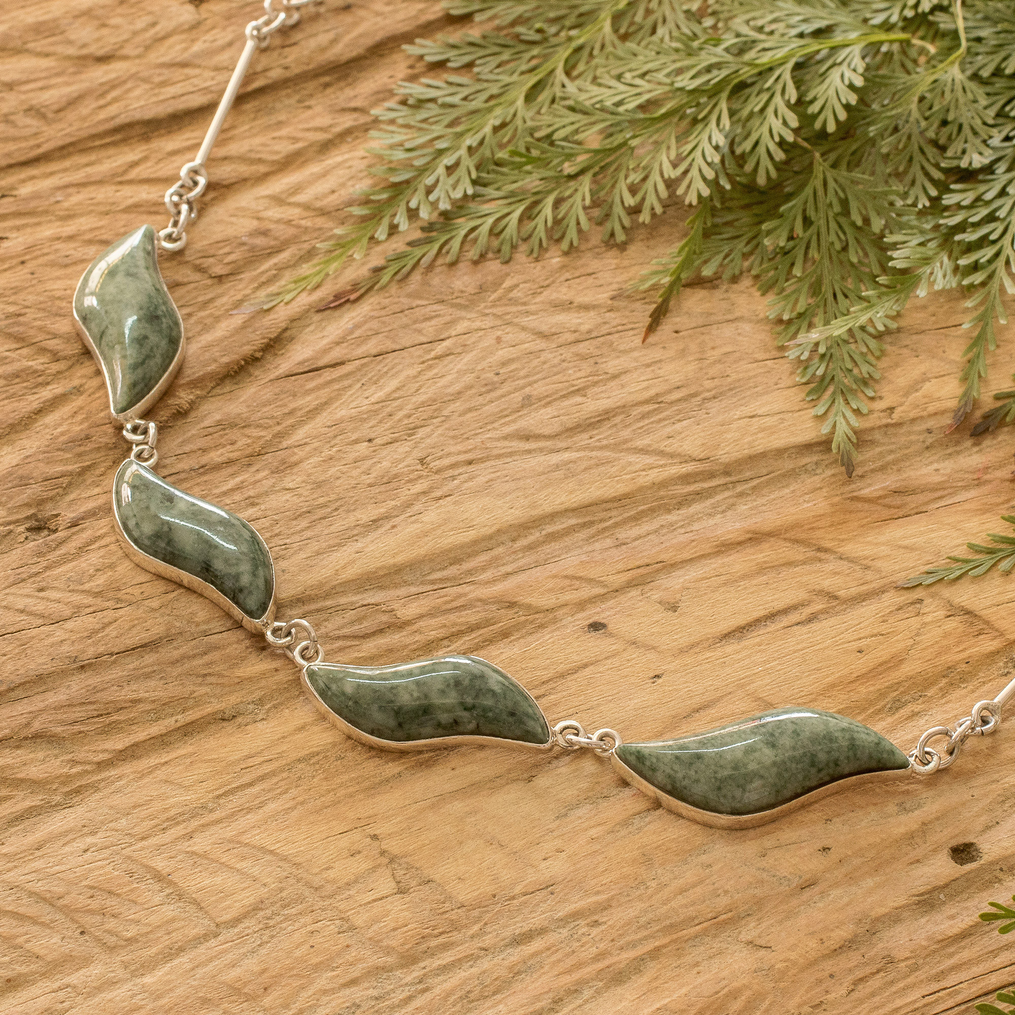 Set in sterling silver, pale jade leaves undulate in the Guatemalan breeze. Zandra Lorena Sajbin creates a beautiful necklace to celebrate the endless beauty of the verdant gem, sacred to the ancient Maya.