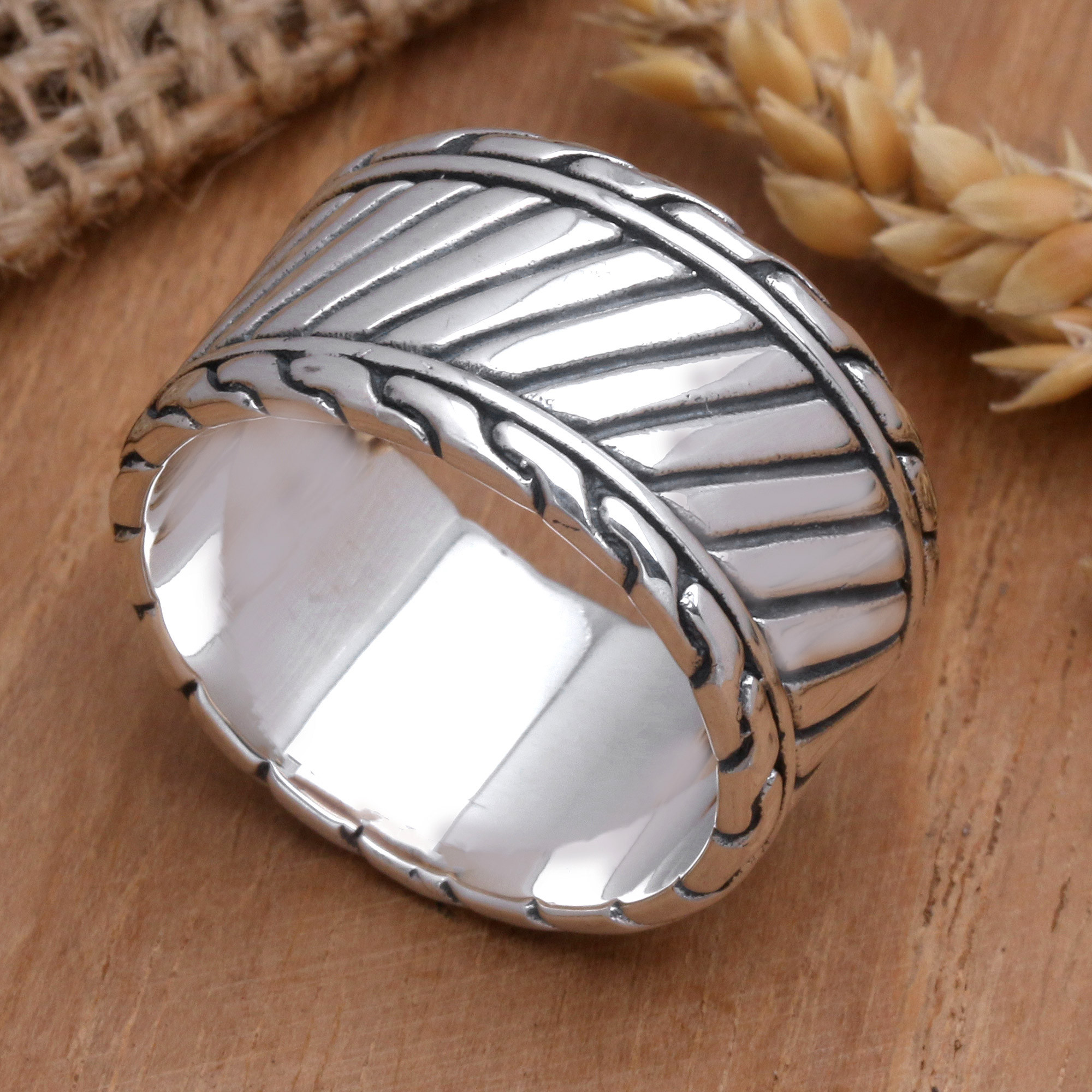 This men's ring is a classic accessory with a unique, handcrafted design. Scalelike patterns curve around the sterling silver band, designed by Indonesia's Putu Gede Darmawan, to evoke images of mythic dragons. This ring is a versatile adornment for any ensemble and can also function as a unique alternative to a wedding band.