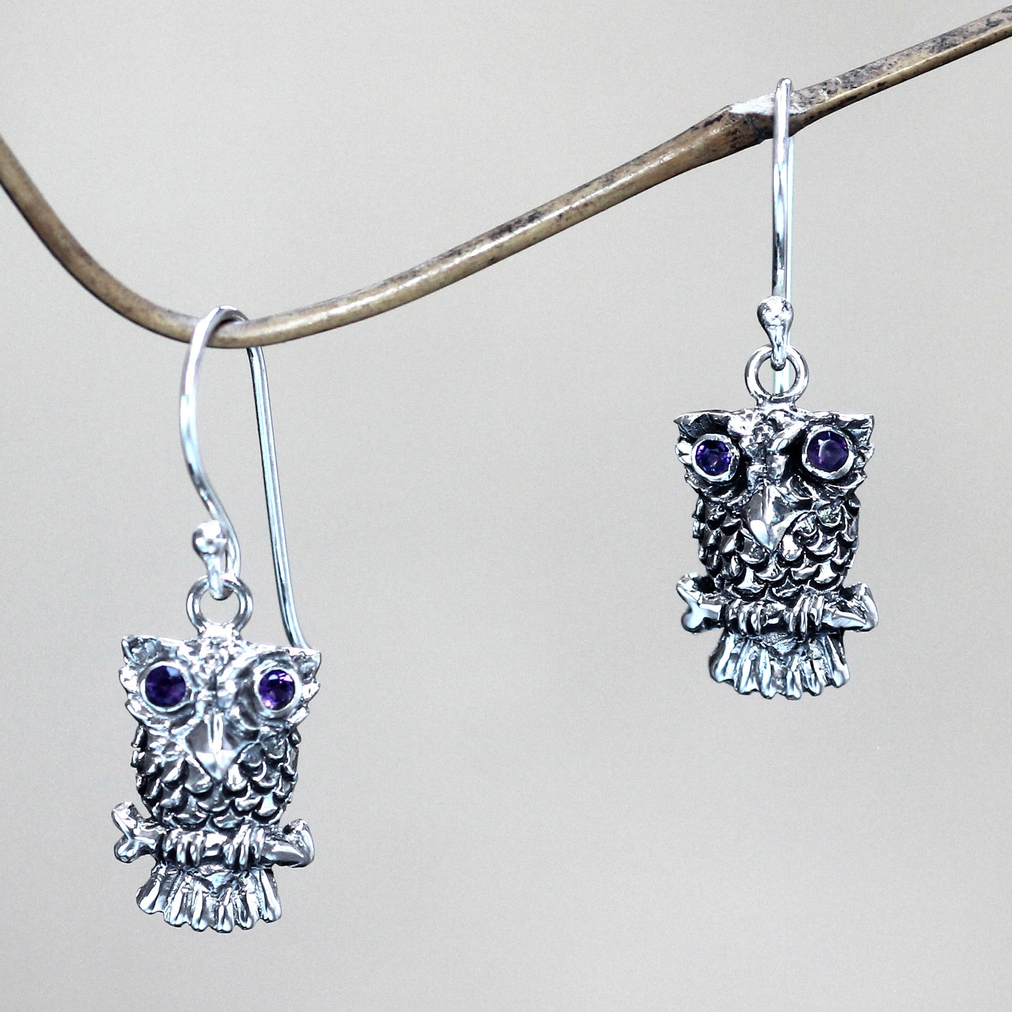 Handcrafted Sterling Silver Owl Earrings, 'The Silver Couple'