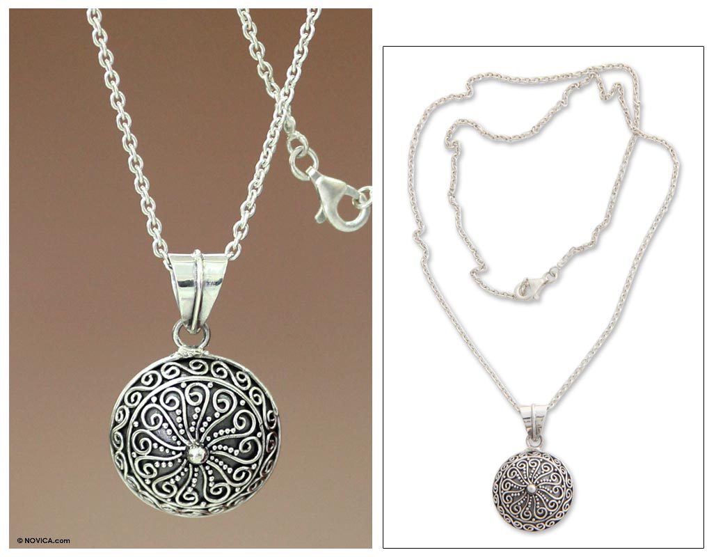 Handcrafted of sterling silver, this necklace from Nyoman Sukartini depicts the elusive fern flower. "Anyone who sees a fern flower is thought to be guaranteed happiness and wealth for the rest of his or her life," she explains.