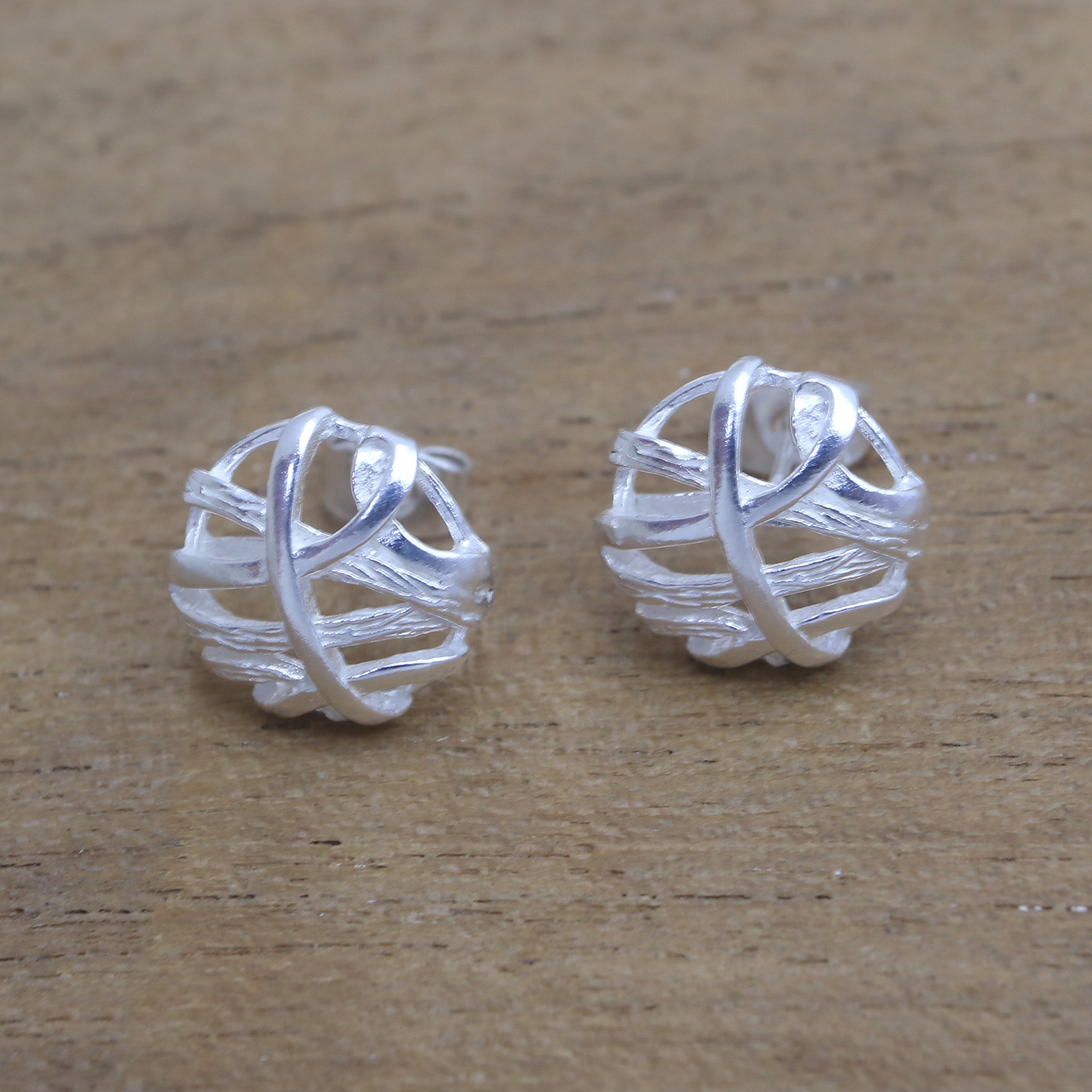 Resembling strips of fabric, elegant openwork is crafted from sterling silver in this pair of stud earrings from Bali. Designed by Desi Antari, these fabulous earrings are accentuated by a combination of finishes.