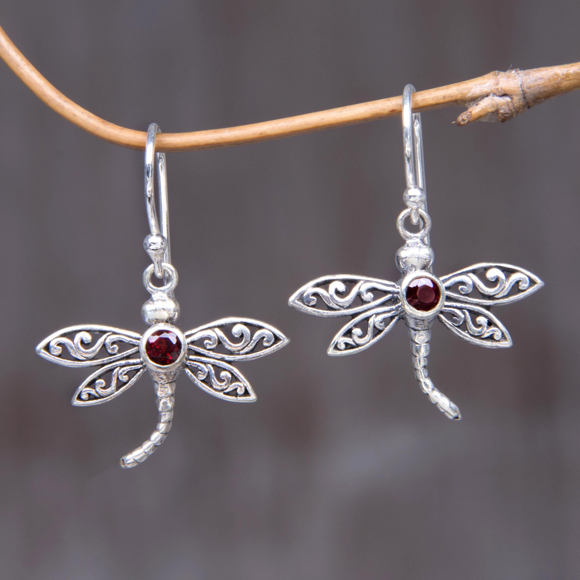 The flight of dragonflies is like an aerial dance. Presented by Komang Wijayana from Indonesia, these enchanting earrings are crafted from .925 sterling silver. Each showcases a faceted garnet, which brings good luck to whoever wears them.