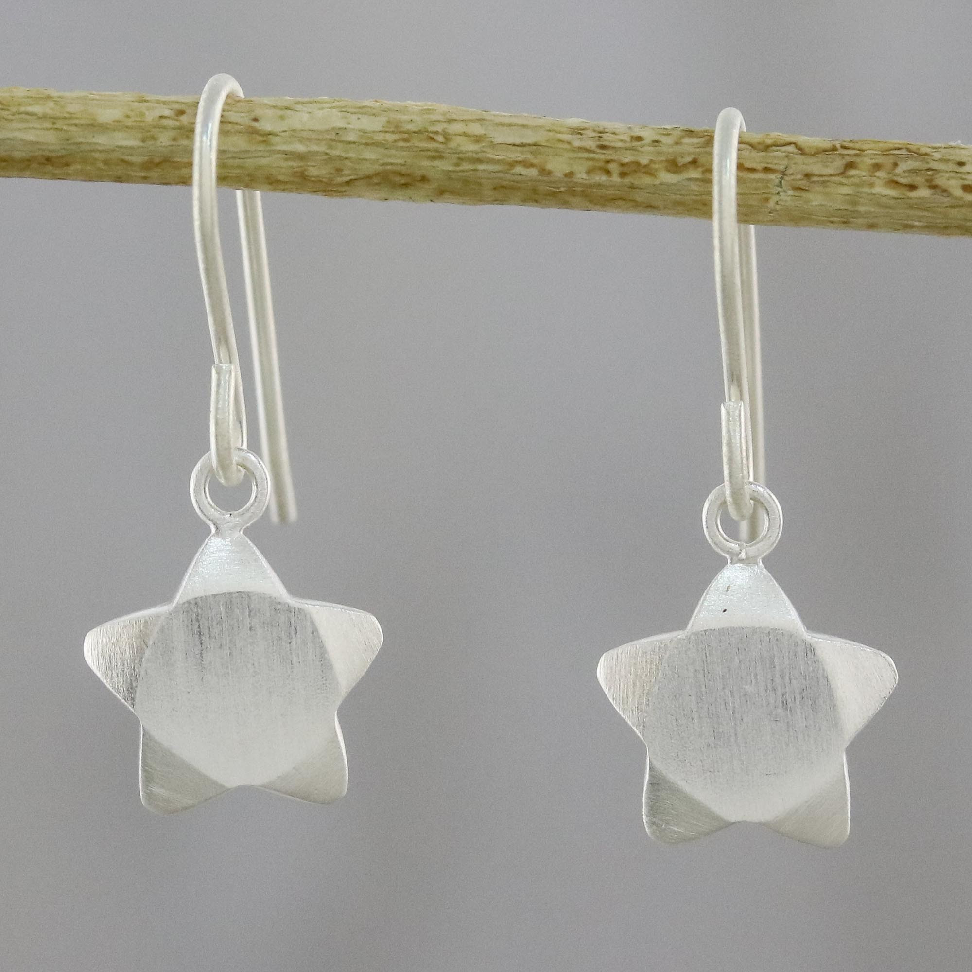 Handmade 925 Sterling Silver Star Dangle Earrings Thailand, 'Charming Star'
