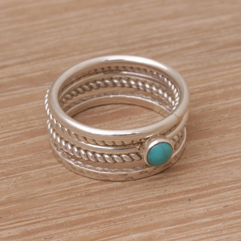 Handmade 925 Sterling Silver Turquoise Stacking Ring, 'Alignment'