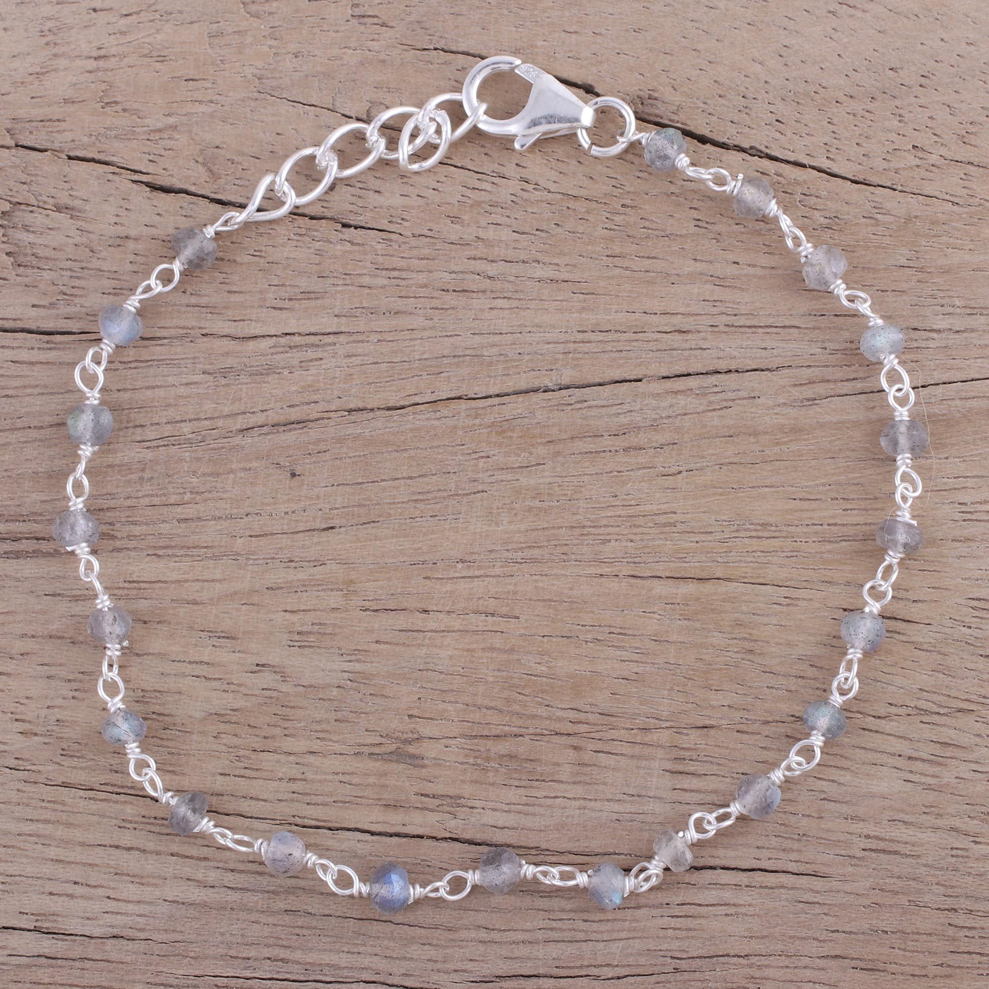 Petite beads of natural labradorite create a beautiful saga around the wrist. Neetu Barathi carefully selects the stones, linking them together with handcrafted sterling silver. This adjustable bracelet from India makes for a dainty and elegant accessory.