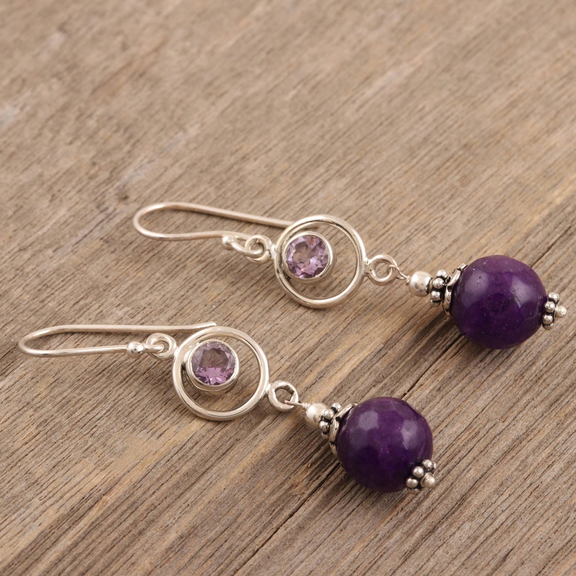 Handmade Agate and Amethyst Dangle Earrings from India, 'Purple Chill'
