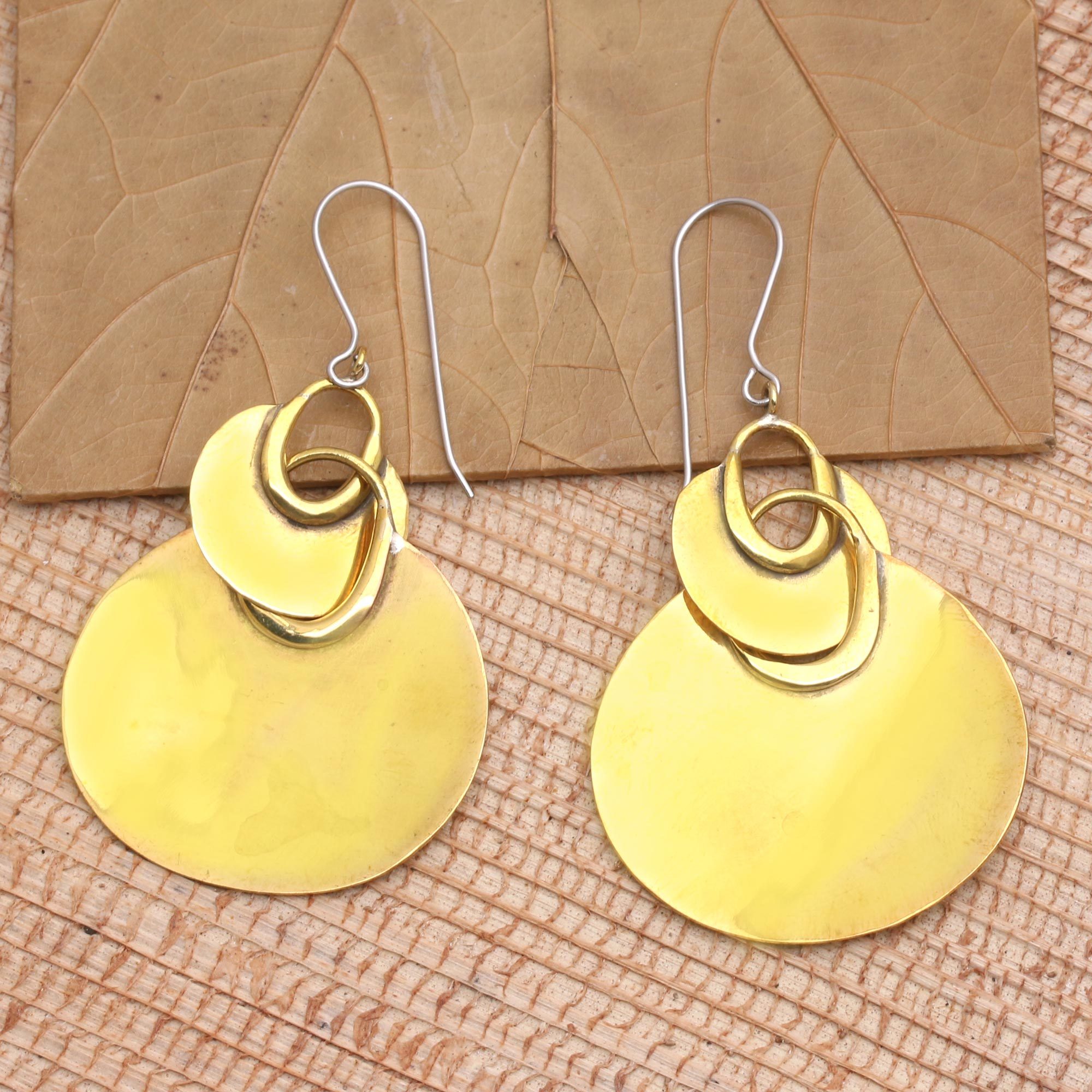 Handmade Brass Dangle Earrings, 'Shimmering Fan'