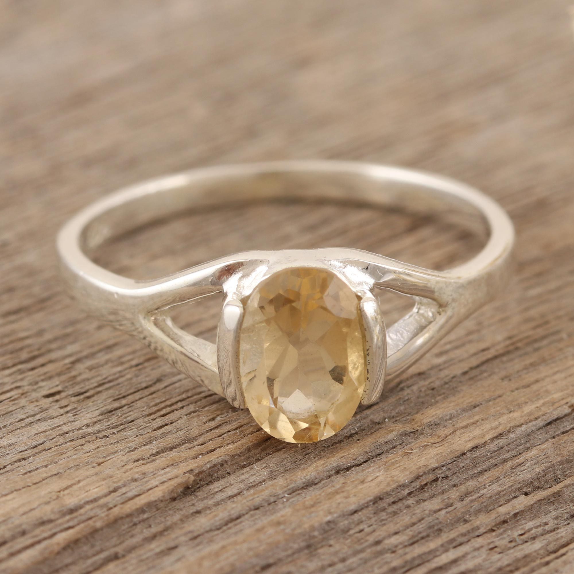 Sleek and simple, Chintan's cheery ring is all you need to feel your brightest. Indian artisans center the ring with a faceted citrine gem in an elegant half-bezel setting, fashioning a slim sterling band that complements the stone with a polished finish.