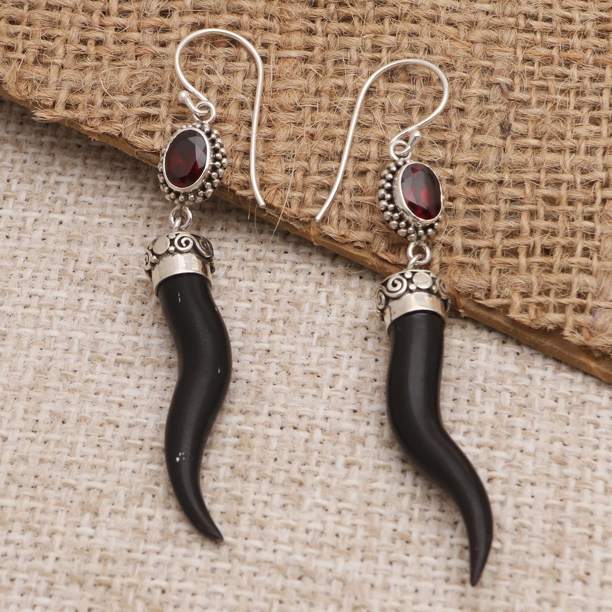 Bali's Made Wardika crafts these unique earring in appreciation of nature. Hand carved from bone, the earrings are crafted into the shape of underground tubers--carrots or sweet potatoes--while pretty garnet gems dangle from shining sterling silver hooks.