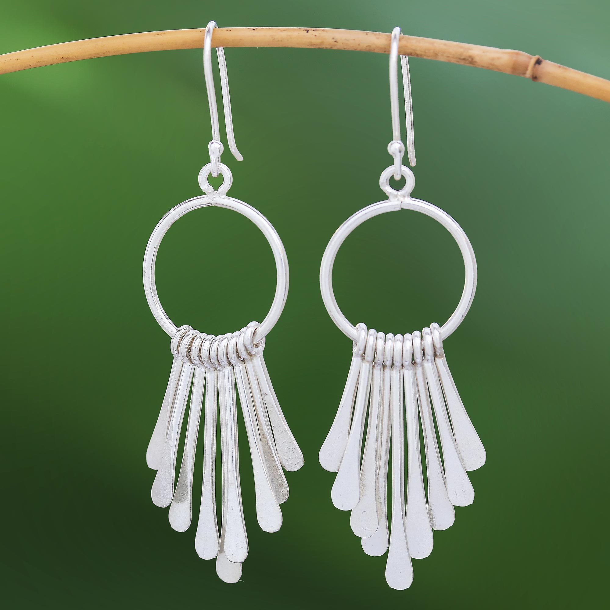 Crafted by hand, 950 silver bars with flattened ends dangle from two rings. Pakaon Sojintarit presents these Thai waterfall earrings, which are created by Karen hill tribe artisans. Each earring swings from a hook of sterling silver.