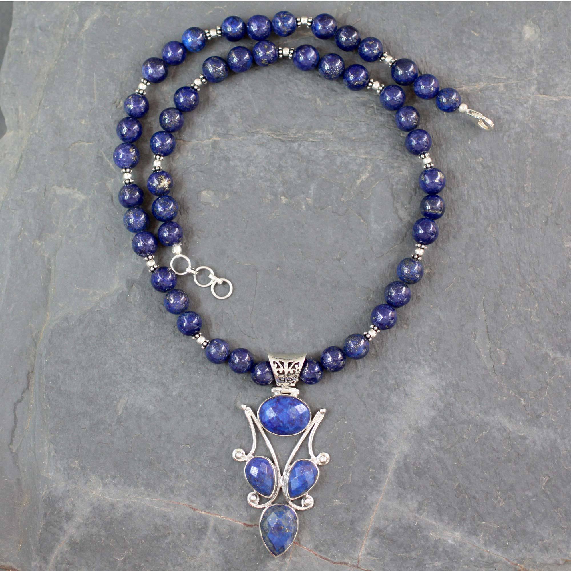 Handmade Lapis Lazuli and Silver Necklace, 'Glorious Blue'
