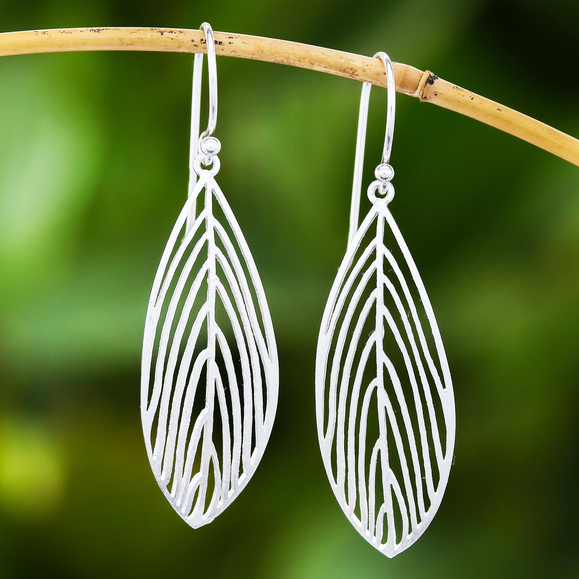 Handmade Leaf Earrings in Sterling Silver from Bali, 'Leaf Silhouette'