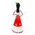 Working in papier mache, Marina Lozano of Mexico creates this beautiful catrina statuette. The skeletal sculpture is elegantly dressed, with flowers in her hair and a macaw at her bosom. Lozano designs the figurine after the original "La Calavera Catrina", a zinc etching created by the artist José Guadalupe Posada in Mexico around 1910. Posada created the character, a female skeleton with an elegant hat, as a satirical portrait of Mexican natives who aspired to European style and denied their own heritage. The catrina has since become an emblem of Mexico's Day of the Dead celebration and a popular folk art subject.