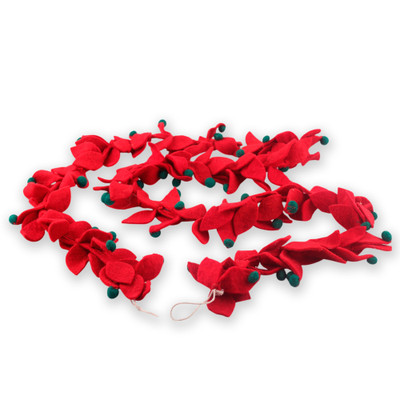 Handmade Red and Green 100% Wool Felt Christmas Garland, 'Eve Decorations'