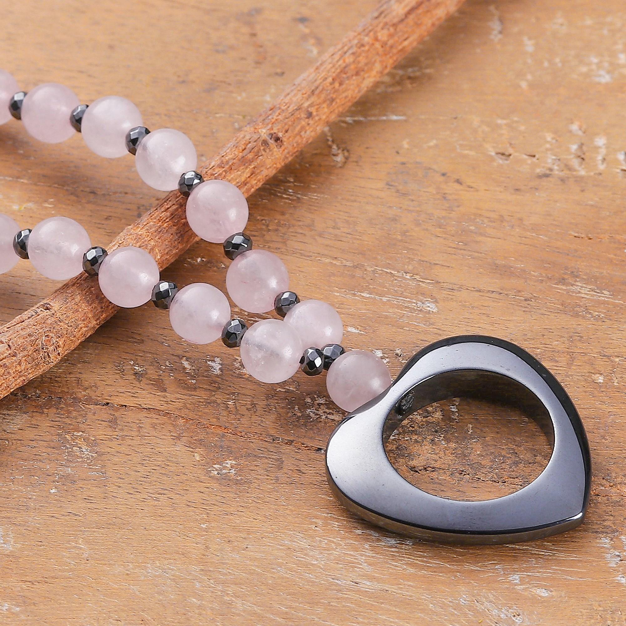 Make space for love and tenderness with this beaded necklace by Sumit Dhawan. Crafted in India, this lovely design decorates its chain and sliding knot with natural rose quartz stones, completing those delicate pink hues with a modern hematite heart pendant.