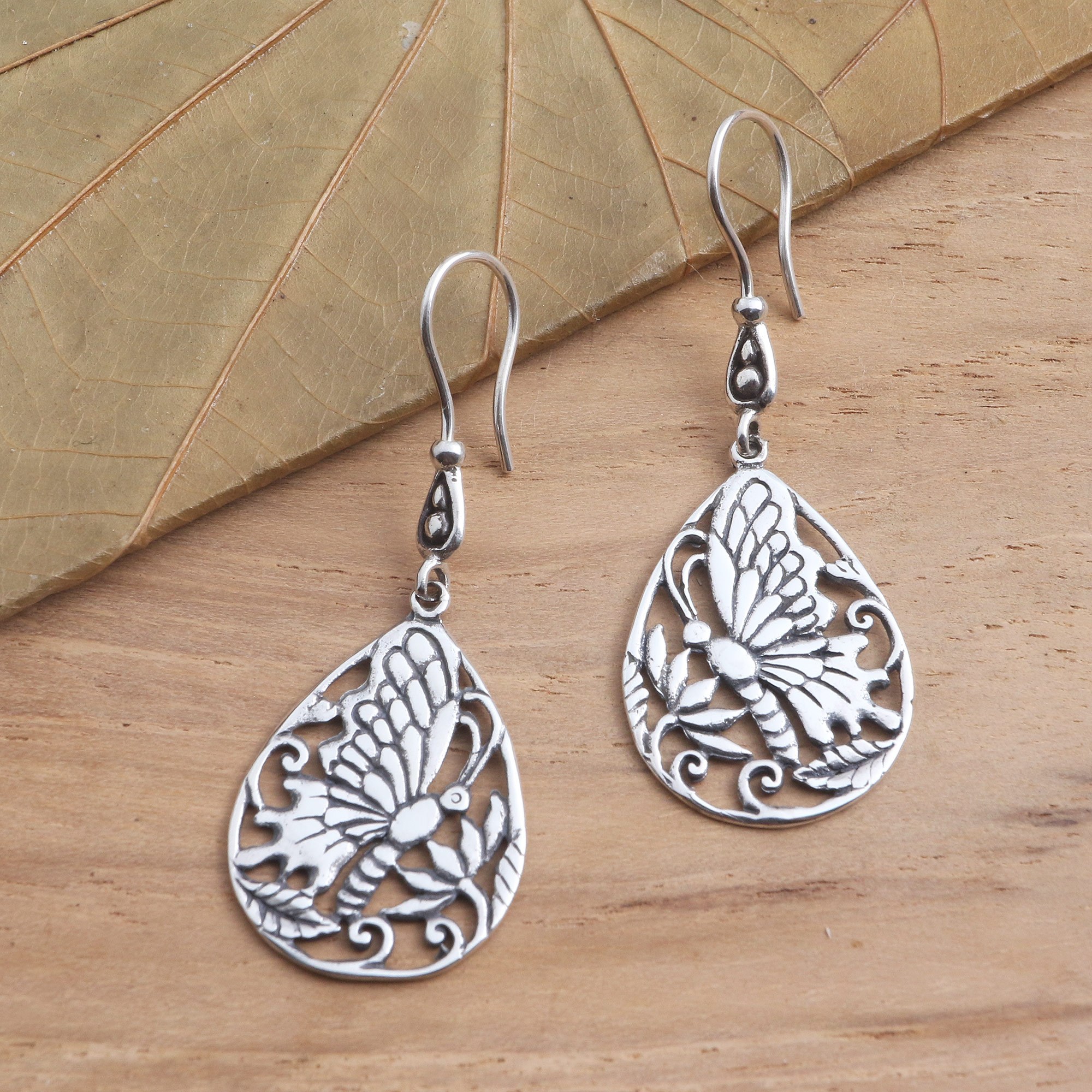 These graceful butterflies seem to flit here and there on the soft evening breezes. Nyoman Ariawan designs these original earrings, crafting them from sterling silver with beautiful detail.