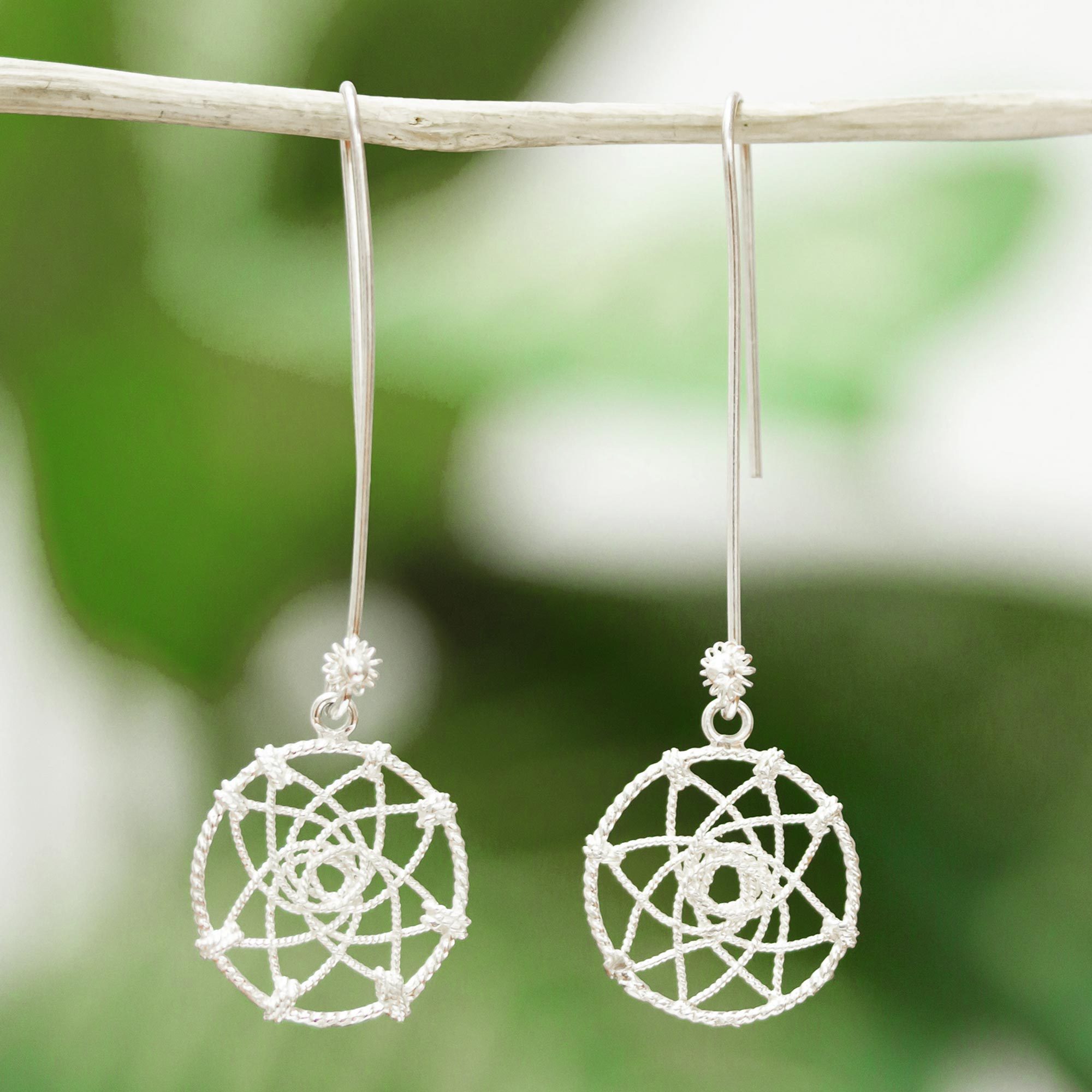 Handmade Sterling Dangle Earrings, 'Delicate Dreamcatcher'