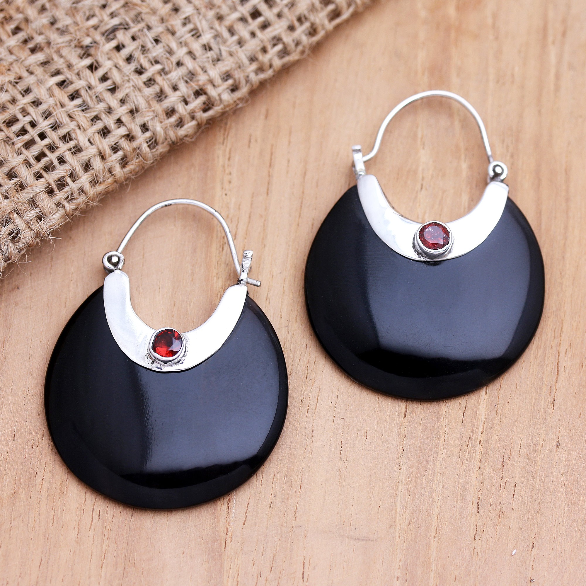 Shaped like mini handbags, Ayu Ary's adorable earrings don't skimp on the elegance, either. The Balinese artisan hand carves the glossy black earrings from natural bone, embellishing her creation with sterling silver accents and faceted garnet gems in bezel settings.