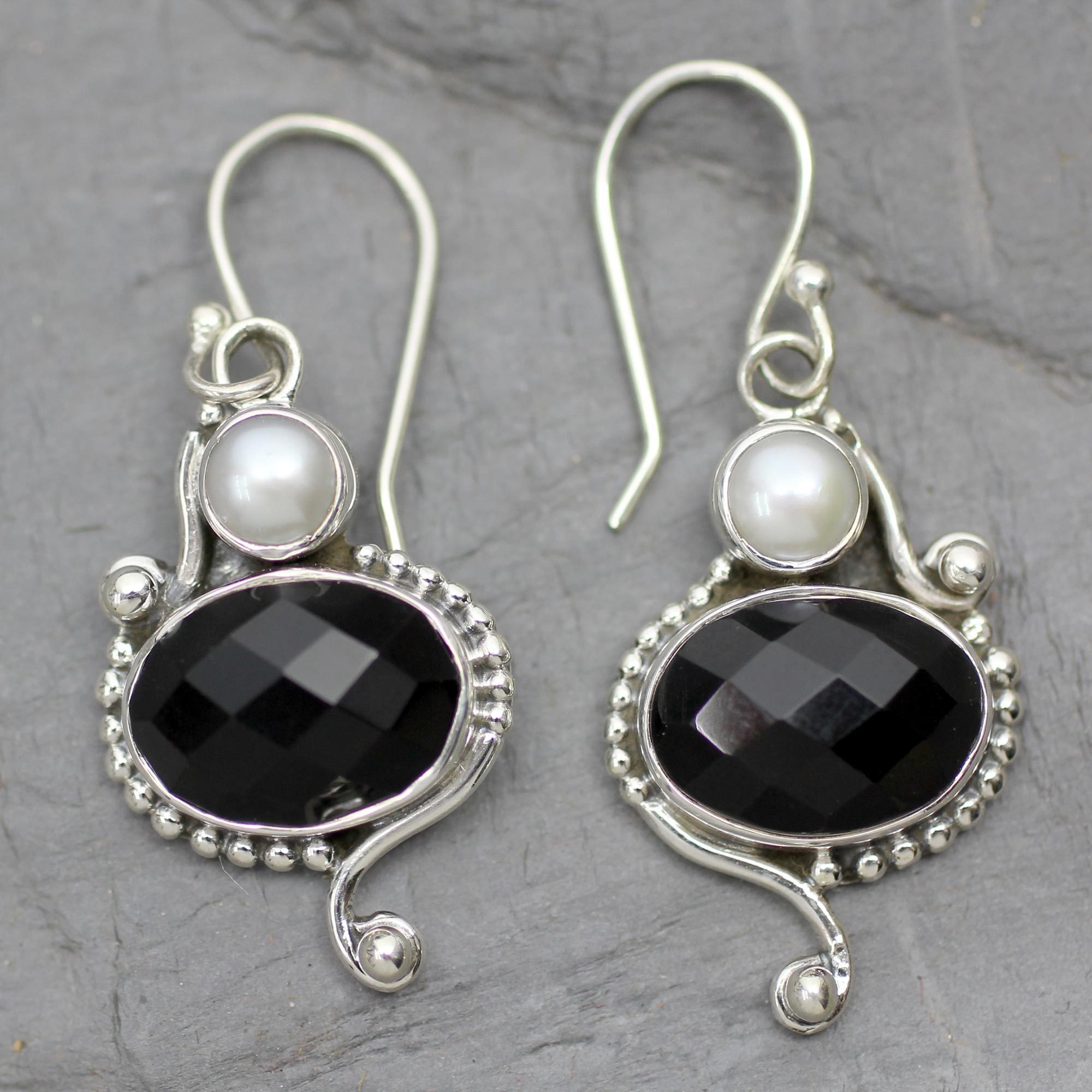 Handmade Sterling Silver Black Onyx and Akoya Pearls, 'Amazing Duo'