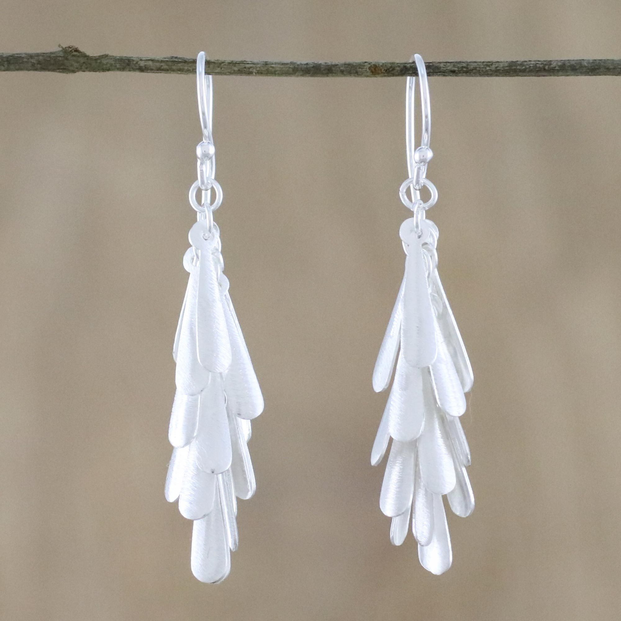 Handmade Sterling Silver Dangle Earrings from Thailand, 'April Showers'