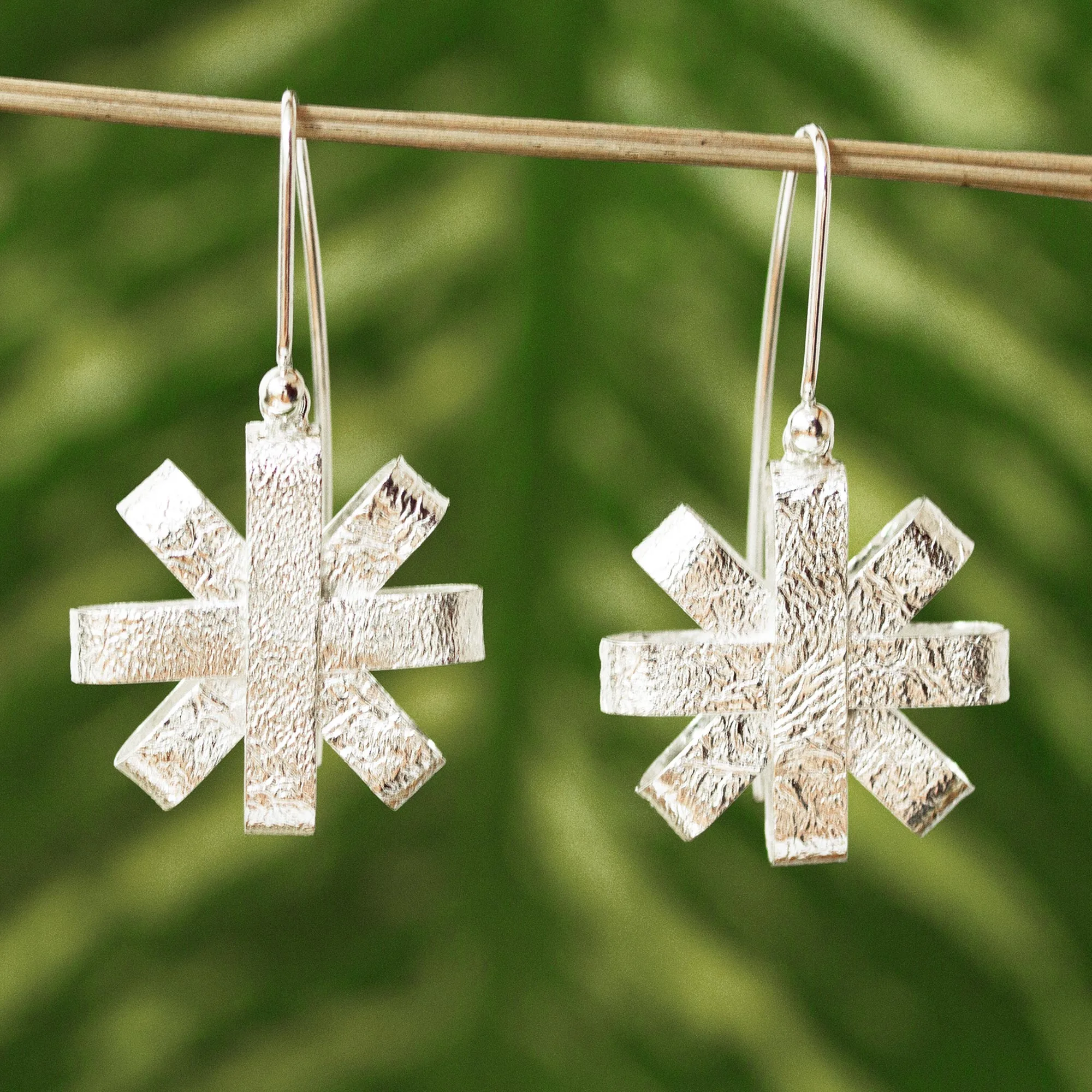 Handmade Sterling Silver Earrings, 'Asterisk'