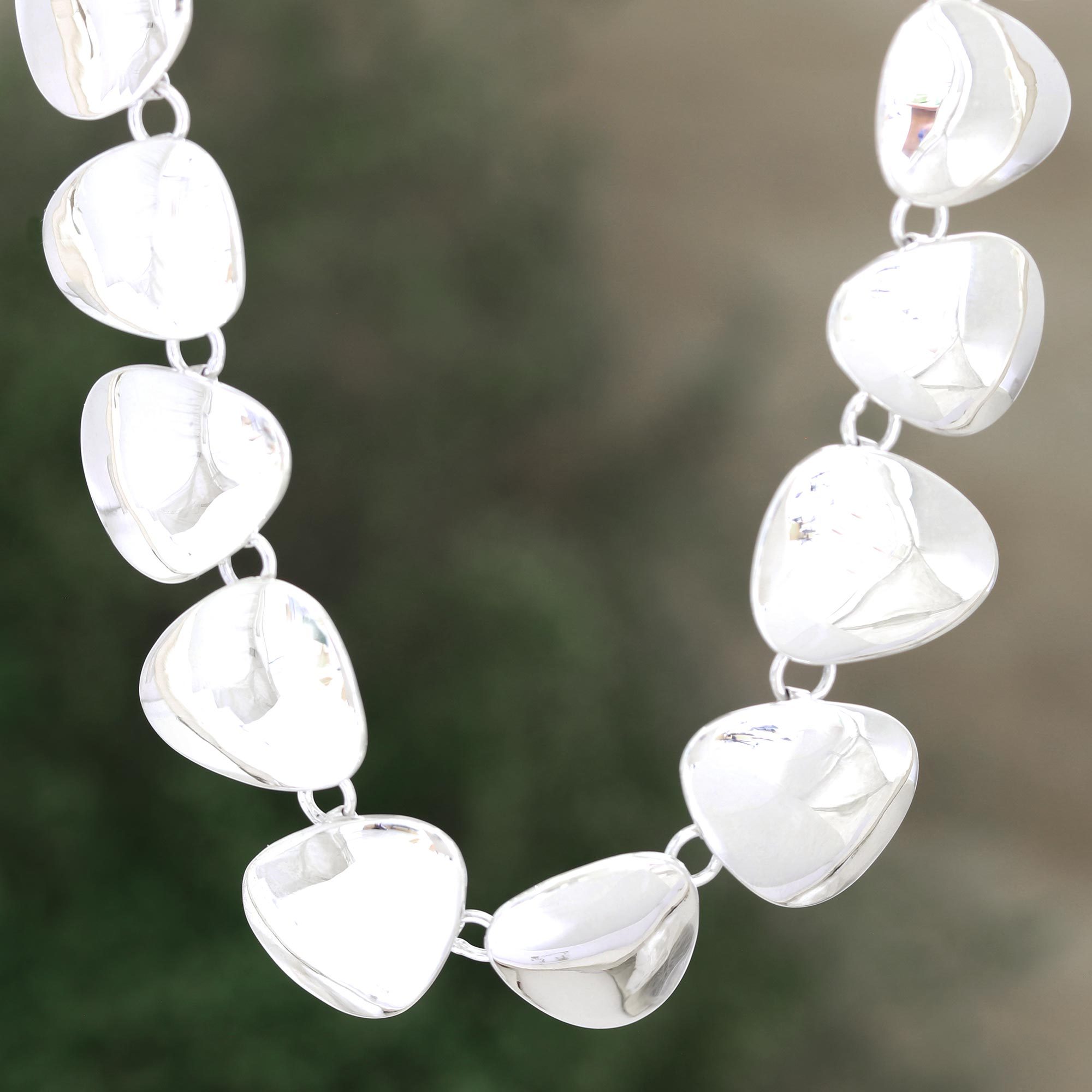 Handmade Sterling Silver Link Necklace from India, 'Sparkling Triangles'