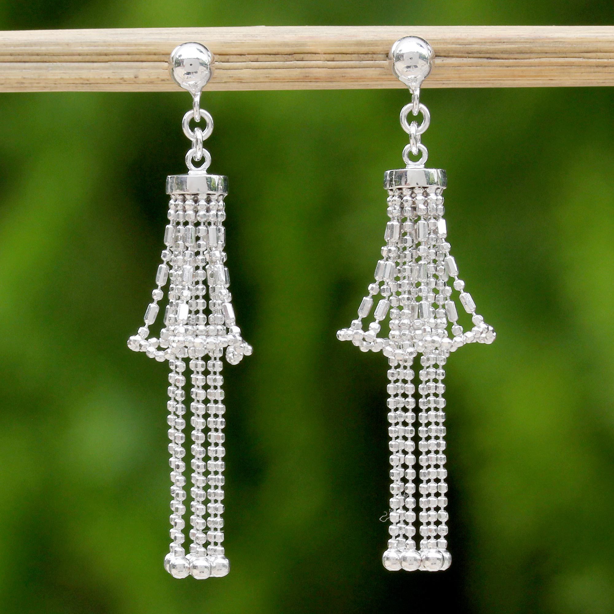 Take center stage with these sparkling chandelier earrings from Thai artisan Angels. Crafted by hand with delicate sterling silver beads, they resemble an inimitable formal gown. Be the belle of the ball and the envy of all while shining brightly in these unforgettable earrings.