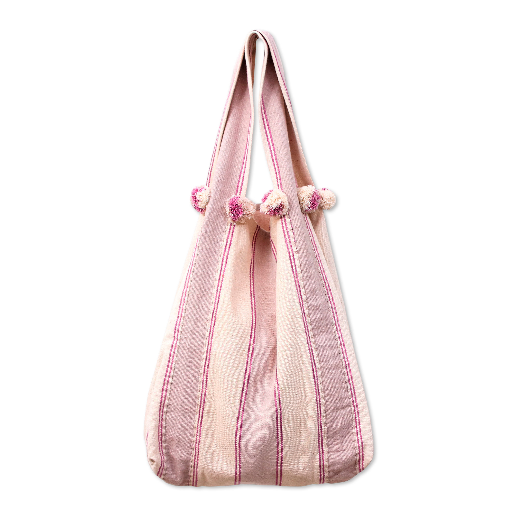 Handmade Striped Soft Pink and Cream 100% Cotton Tote Bag, 'Plum Daydreams'