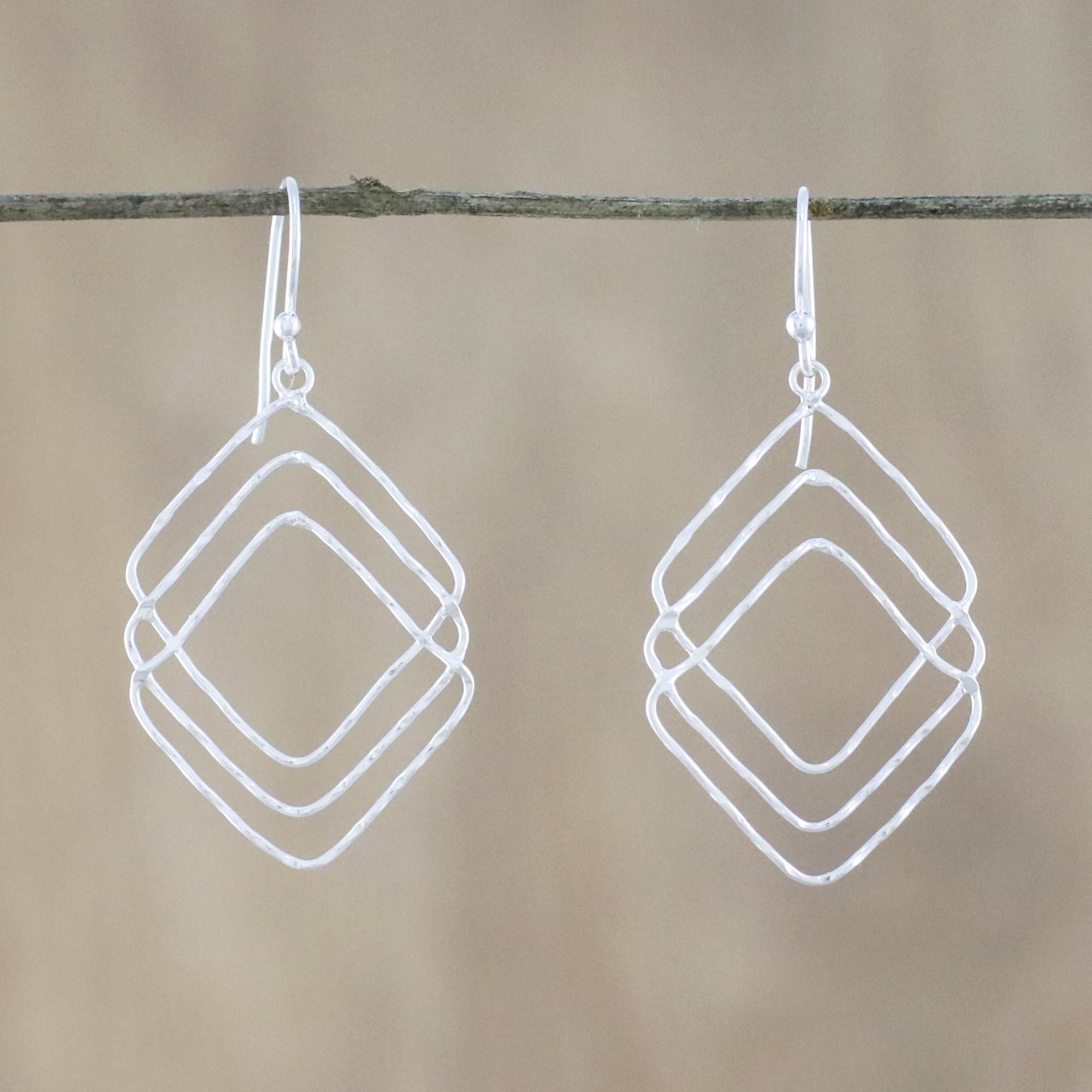Handmade Thai Sterling Silver Geometric Dangle Earrings, 'Three of Diamonds'