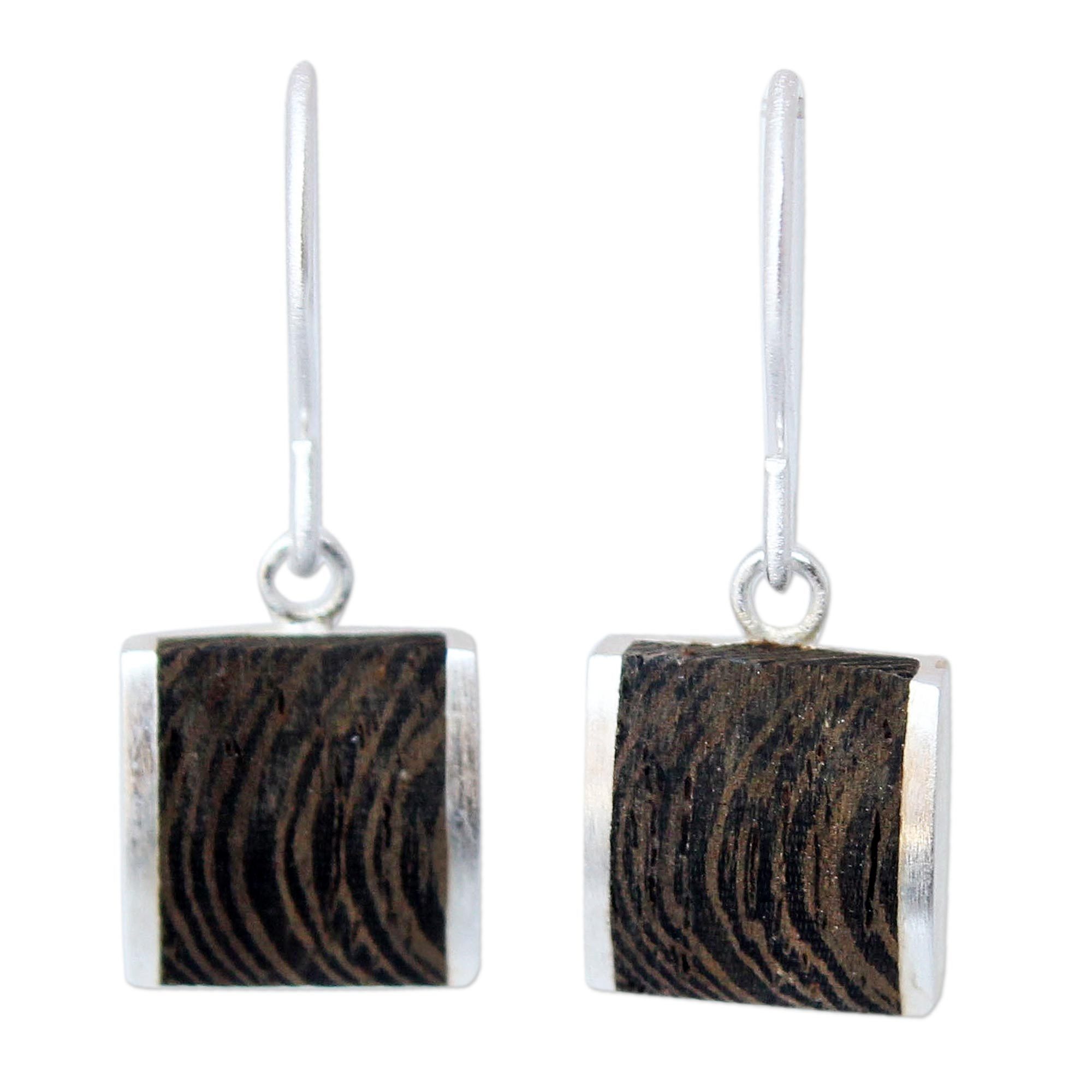 The sheer beauty of natural wood grain is the feature showcased in modernist classic earrings from Sarote Lochotinunt of Thailand. Handcarved from Indian elm, the .925 sterling silver mounts have been finished with a subtle, matte style. Celebrate nature's beauty with these wonderfully minimalist designs from Thailand.