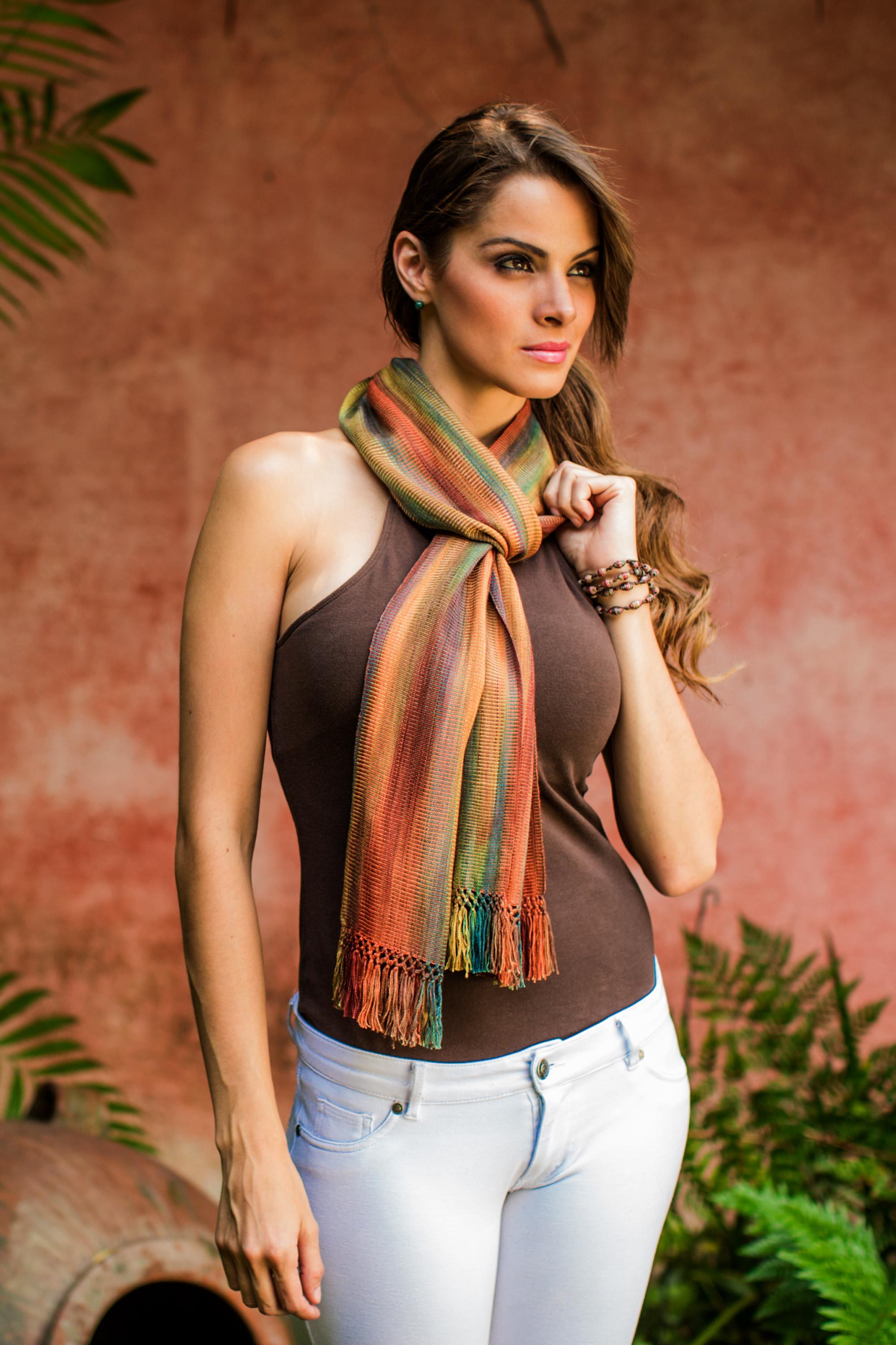 Subtle yet colorful, this bamboo fiber scarf is a perfect accent to your fall wardrobe! By K'amolon K'i K'ojonel, this original piece is hand woven on the traditional backstrap loom. With so many colors, this scarf is sure to fit perfectly into your wardrobe.